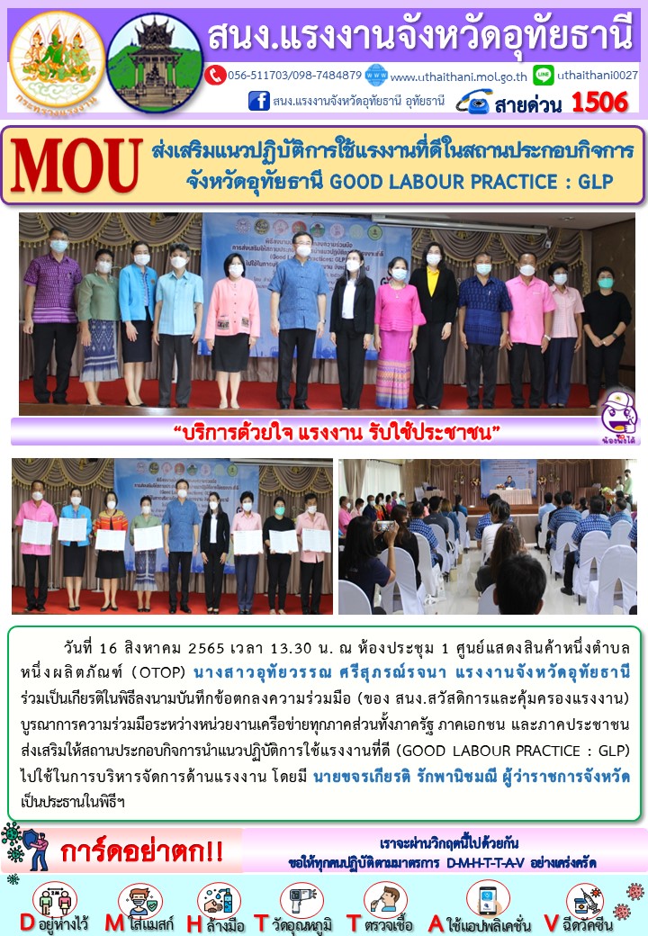 ร่วมเป็นเกียรติในพิธีลงนามส่งเสริมแนวปฏิบัติการใช้แรงงานที่ดีในสถานประกอบกิจการจังหวัดอุทัยธานี
