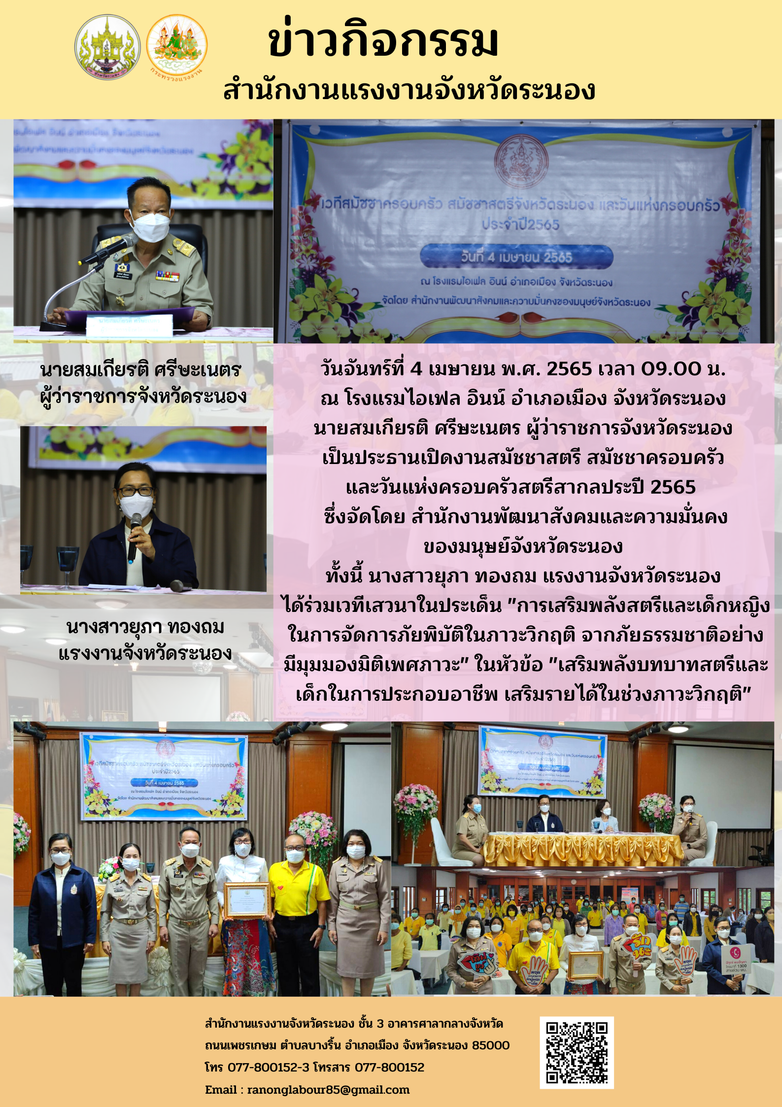 ร่วมเวทีเสวนาในประเด็น “การเสริมพลังสตรีและเด็กหญิงในการจัดการภัยพิบัติในภาวะวิกฤติ จากภัยธรรมชาติอย่างมีมุมมองมิติเพศภาวะ” ในหัวข้อ “เสริมพลังบทบาทสตรีและเด็กในการประกอบอาชีพ เสริมรายได้ในช่วงภาวะวิกฤติ”