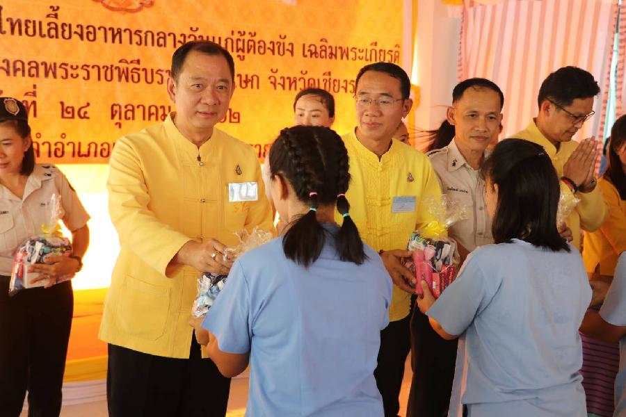 สำนักงานแรงงานจังหวัดเชียงราย นำโดยนายเฉลิมพล เนียมสกุลแรงงานจังหวัดเชียงรายร่วมโครงการทานน้ำใจท้องถิ่นไทยเลี้ยงอาหารกลางวันแก่ผู้ต้องขัง เฉลิมพระเกียรติเนื่องในโอกาสมหามงคลพระราชพิธีบรมราชาภิเษก เมื่อเที่ยงวันพฤหัสบดีที่ 24 ตุลาคม 2562 ที่เรือนจำตำบลเวียง อำเภอเทิง จังหวัดเชียงราย โดยมีนายภาษเดช หงส์ลดารมภ์ รองผู้ว่าราชการจังหวัดเชียงราย เป็นประธานในพิธีและได้นำผู้เข้าร่วมโครงการกล่าวคำปฏิญาณเบื้องหน้าพระบรมฉายาลักษณ์ พระบาทสมเด็จพระปรเมนทรรามาธิบดีมหาวชิราลงกรณ พระวชิรเกล้าเจ้าอยู่หัว จากนั้น ได้มอบสิ่งของเครื่องใช้ที่จำเป็นในการดำรงชีพและยาสามัญประจำบ้านที่ได้รับบริจาคจากผู้มีจิตศรัทธา ก่อนจะร่วมกันจัดเลี้ยงอาหารกลางวันแก่ผู้ต้องขัง และทำกิจกรรมสันทนาการตามความเหมาะสม