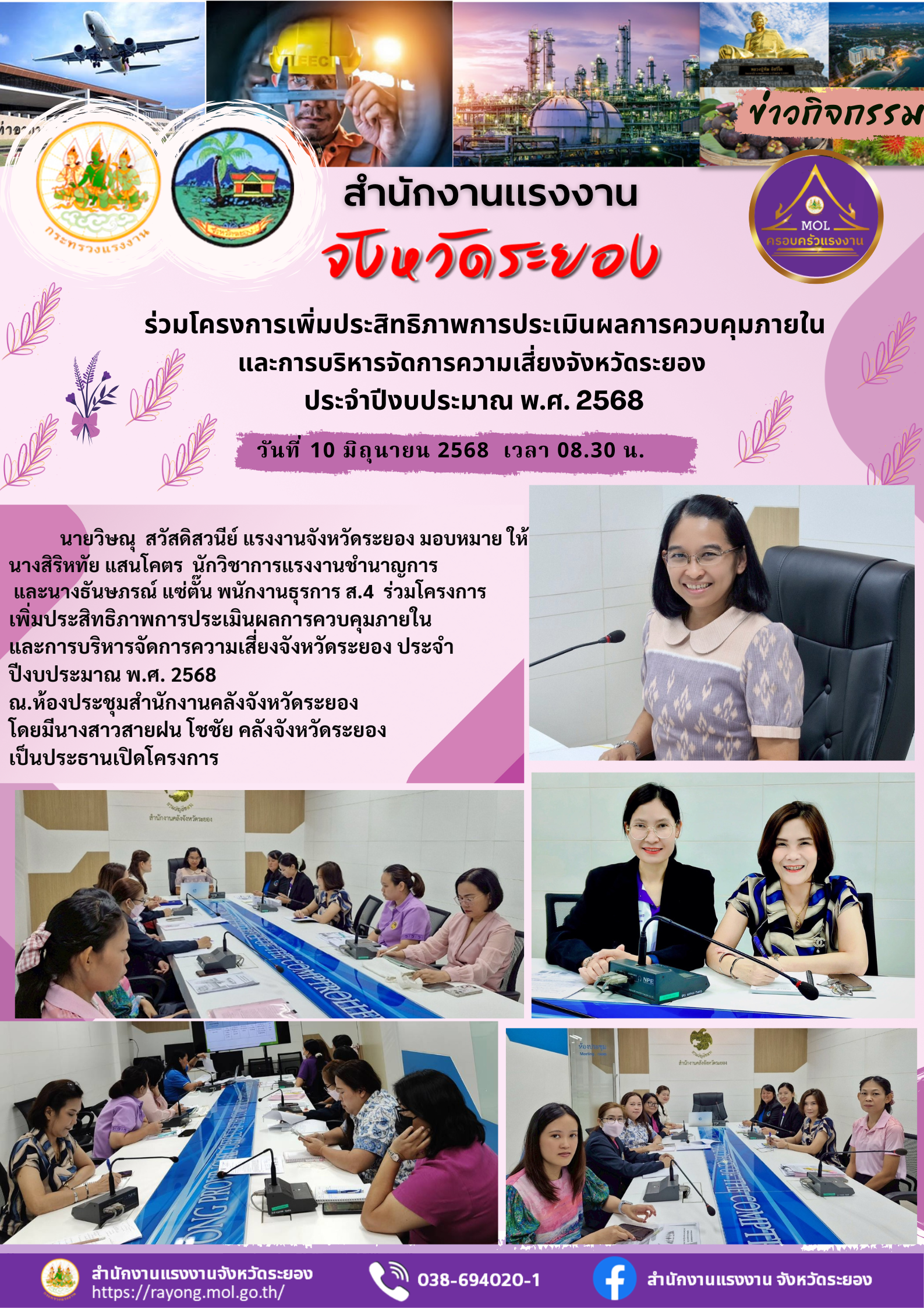 และการบริหารจัดการความเสี่ยงจังหวัดระยอง ประจำปีงบประมาณ พ.ศ. 2568