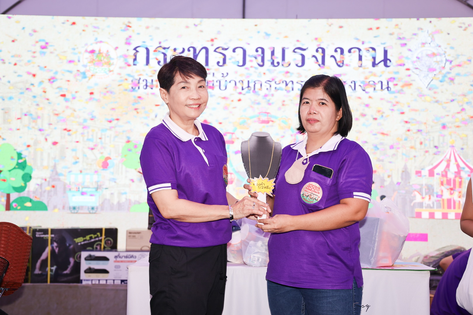 วันที่ 16 ธันวาคม 2566 เวลา 17.00 น. นายไพโรจน์ โชติกเสถียร ปลัดกระทรวงแรงงาน มอบหมายให้ นายเดชา พฤกษ์พัฒนรักษ์ รองปลัดกระทรวงแรงงาน พร้อมด้วย นายนันทชัย ปัญญาสุรฤทธิ์ ผู้ตรวจราชการกระทรวงแรงงาน นางสาวกรจิรัฏฐ์ พงจันทร์ศธร ผู้ช่วยปลัดกระทรวงแรงงาน ผู้บริหาร ข้าราชการ และเจ้าหน้าที่สำนักงานปลัดกระทรวงแรงงาน ร่วมกิจกรรมการออกร้านกาชาดกระทรวงแรงงานและมอบรางวัลให้กับผู้โชคดี ภายในงานกาชาดประจำปี 2566 ซึ่งจัดขึ้นระหว่างวันที่ 8-18 ธันวาคม 2566 ภายใต้แนวคิด “รื่นรมย์สุขฤดี ณ ที่แห่งการให้” ณ สวนลุมพินี ถนนพระรามที่ 4 เขตปทุมวัน กรุงเทพมหานคร