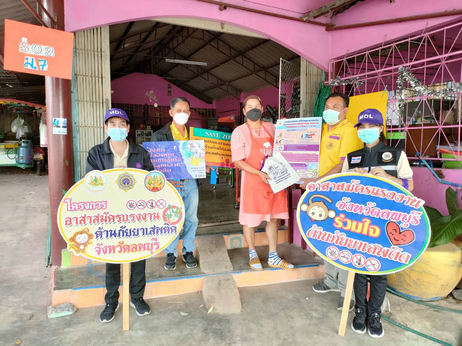 วันที่ 8 กุมภาพันธ์ 2565 เวลา 09.30 น. นางสาวสุกัญญา องค์วิเศษไพบูลย์ แรงงานจังหวัดลพบุรี มอบหมายให้ นายเชน รัตนเสถียร นักวิชาการแรงงานชำนาญการ และเจ้าหน้าที่สำนักงานแรงงานจังหวัดลพบุรี ลงพื้นที่ให้ความรู้ ปรึกษา แนะนำ เพื่อป้องกันและแก้ไขปัญหายาเสพติด แก่อาสาสมัครแรงงาน นายจ้าง/เจ้าของสถานประกอบการที่มีลูกจ้างต่ำกว่า 10 คน และกลุ่มแรงงานนอกระบบ/แรงงานอิสระ อำเภอเมืองลพบุรี อาสาสมัครแรงงานระดับตำบล อำเภอเมืองลพบุรี จำนวน 24 คน สถานประกอบการฯ จำนวน 5 แห่ง ลูกจ้าง จำนวน 13 คน และแรงงานนอกระบบ จำนวน 4 คน