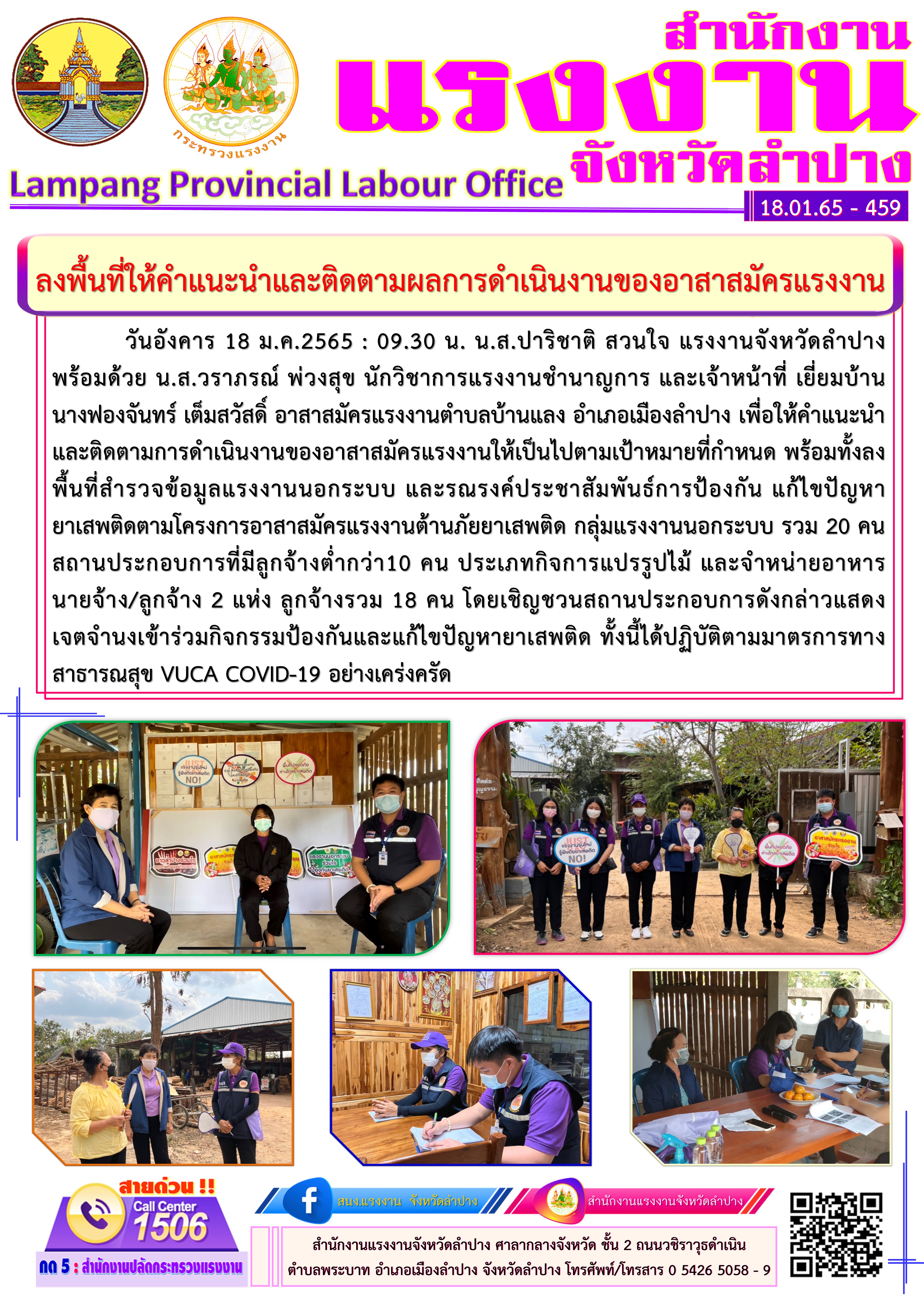 สรจ.ลำปาง ลงพื้นที่ให้คำแนะนำและติดตามผลการดำเนินงานของอาสาสมัครแรงงาน
