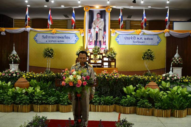 วันที่ 1 เมษายน 2562 เวลา 08.00 น. นางสาวปราณี ชลารักษ์ แรงงานจังหวัดแพร่ มอบหมายให้นายชูเกียรติ สารดี นักวิชาการแรงงานชำนาญการ ร่วมกิจกรรมงานวันข้าราชการพลเรือน ประจำปี พ.ศ.2562 ภายใต้หัวข้อ “เสริมสร้างเกียรติภูมิข้าราชการไทย เพื่อความโปร่งใส เชื่อมั่นและศรัทธา” ณ หอประชุมตรีเทพ สถาบันประชารัฐพิทักษ์ป่า โดยมีนายพงศ์รัตน์ ภิรมย์รัตน์ ผู้ว่าราชการจังหวัดแพร่เป็นประธานในพิธีดังกล่าว