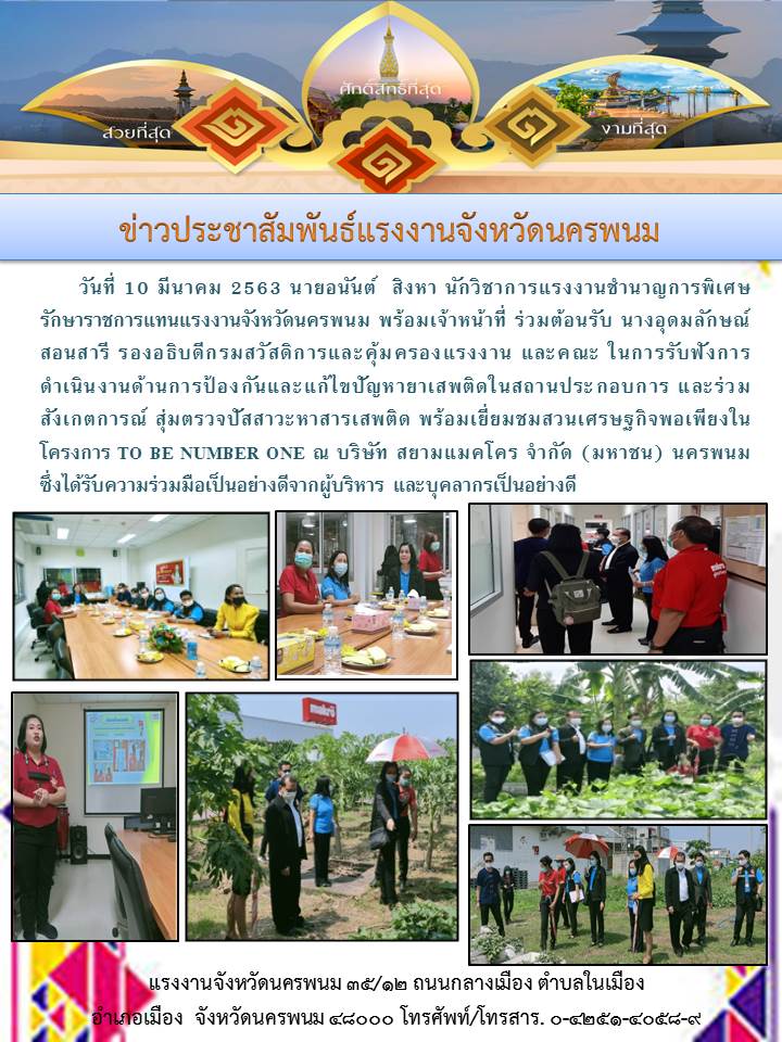 แรงงานจังหวัดนครพนม พร้อมเจ้าหน้าที่ ร่วมต้อนรับ นางอุดมลักษณ์ สอนสารี รองอธิบดีกรมสวัสดิการและคุ้มครองแรงงาน และคณะ