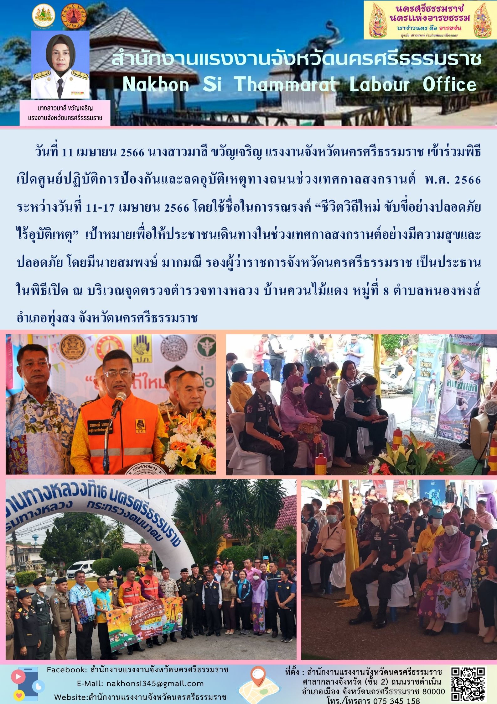 สรจ.นครศรีธรรมราช เข้าร่วมพิธีเปิดศูนย์ปฏิบัติการป้องกันและลดอุบัติเหตุทางถนนช่วงเทศกาลสงกรานต์ พ.ศ. 2566