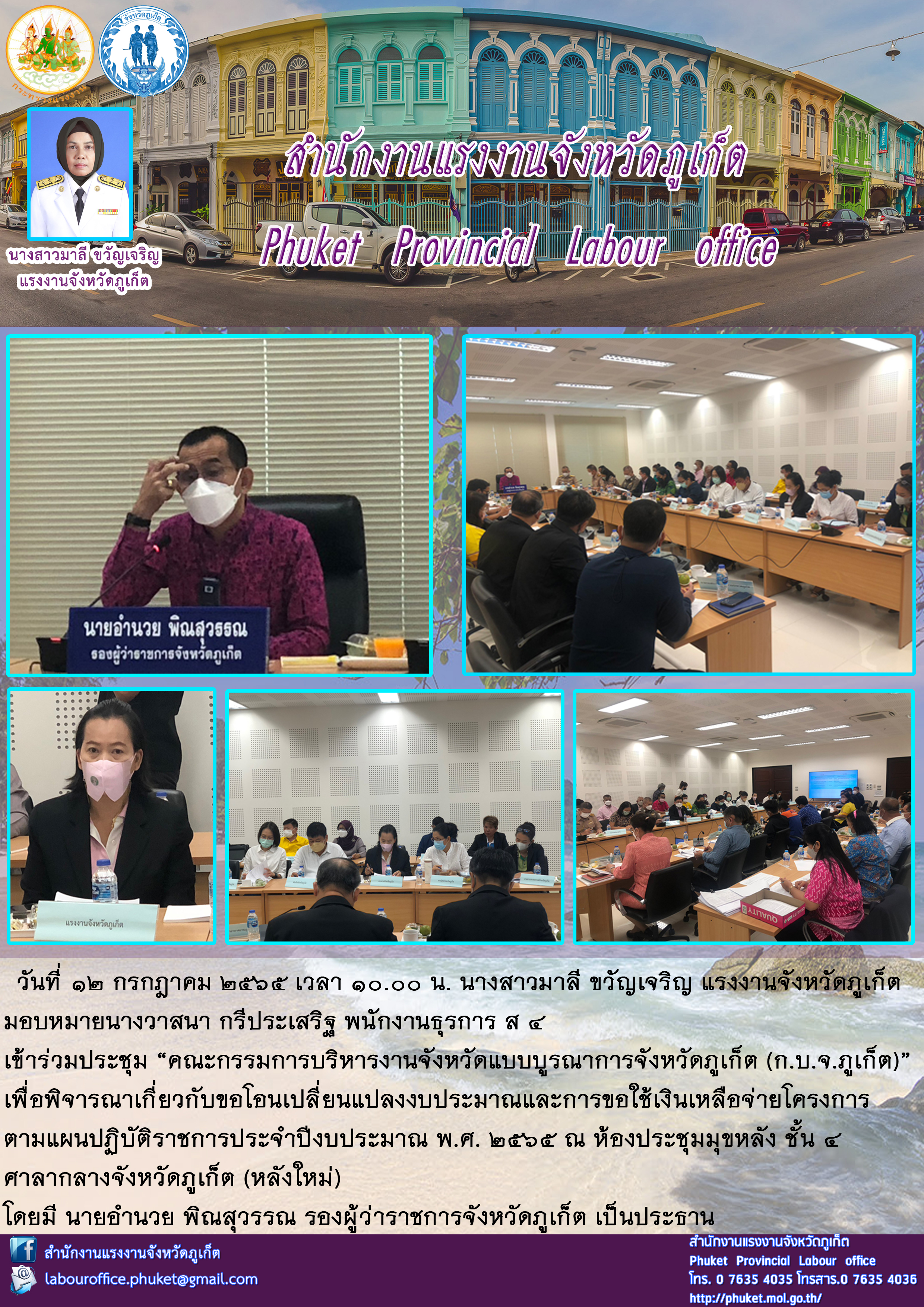 สรจ.ภูเก็ต เข้าร่วมประชุม “คณะกรรมการบริหารงานจังหวัดแบบบูรณาการจังหวัดภูเก็ต (ก.บ.จ.ภูเก็ต)”