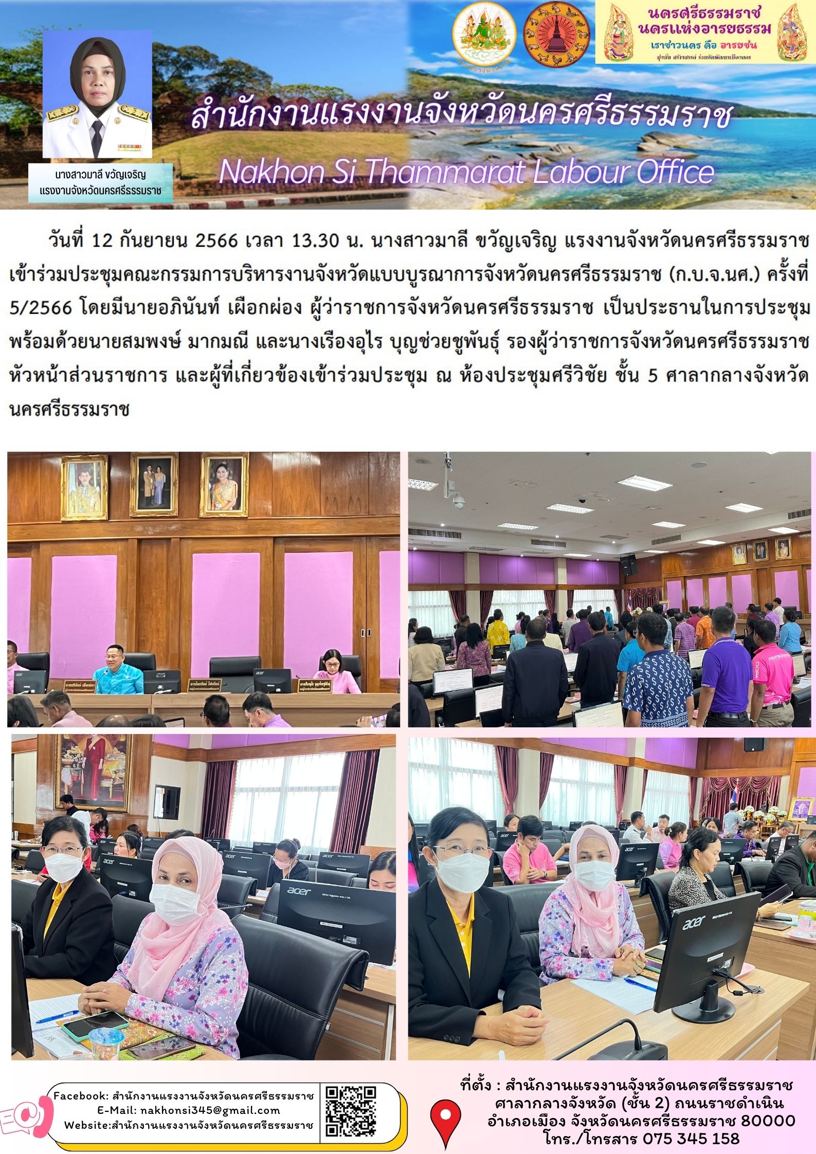 สรจ.นครศรีธรรมราช เข้าร่วมประชุมคณะกรรมการบริหารงานจังหวัดแบบบูรณาการจังหวัดนครศรีธรรมราช (ก.บ.จ.นศ.) ครั้งที่ 5/2566