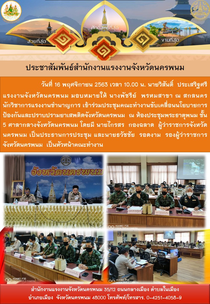 แรงงานจังหวัดนครพนม เข้าร่วมประชุมคณะทำงานขับเคลื่อนนโยบายการป้องกันและปราบปรามยาเสพติดจังหวัดนครพนม