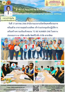 สรจ.นครศรีธรรมราช พร้อมด้วย สาธารณสุขอำเภอสิชล เข้าร่วมประชุมเชิงปฏิบัติการเสริมสร้างความเข้มแข็งชมรม TO BE NUMBER ONE ในสถานประกอบการ ณ บริษัท เอกชัย ดิสทรีบิวชั่น จำกัด สาขาสิชล