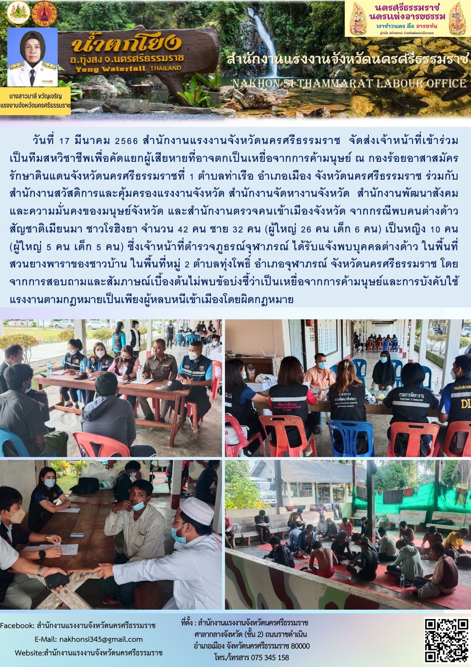 สรจ.นครศรีธรรมราช จัดส่งเจ้าหน้าที่เข้าร่วม เป็นทีมสหวิชาชีพเพื่อคัดแยกผู้เสียหายที่อาจตกเป็นเหยื่อจากการค้ามนุษย์