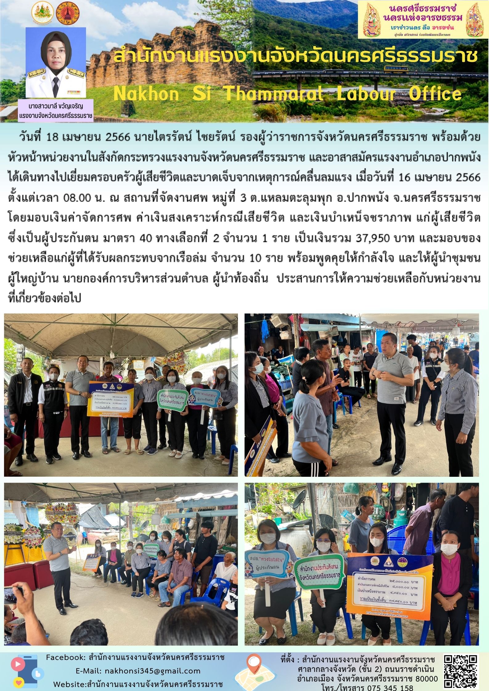สรจ.นครศรีธรรมราช ได้เดินทางไปเยี่ยมครอบครัวผู้เสียชีวิตและบาดเจ็บจากเหตุการณ์คลื่นลมแรง