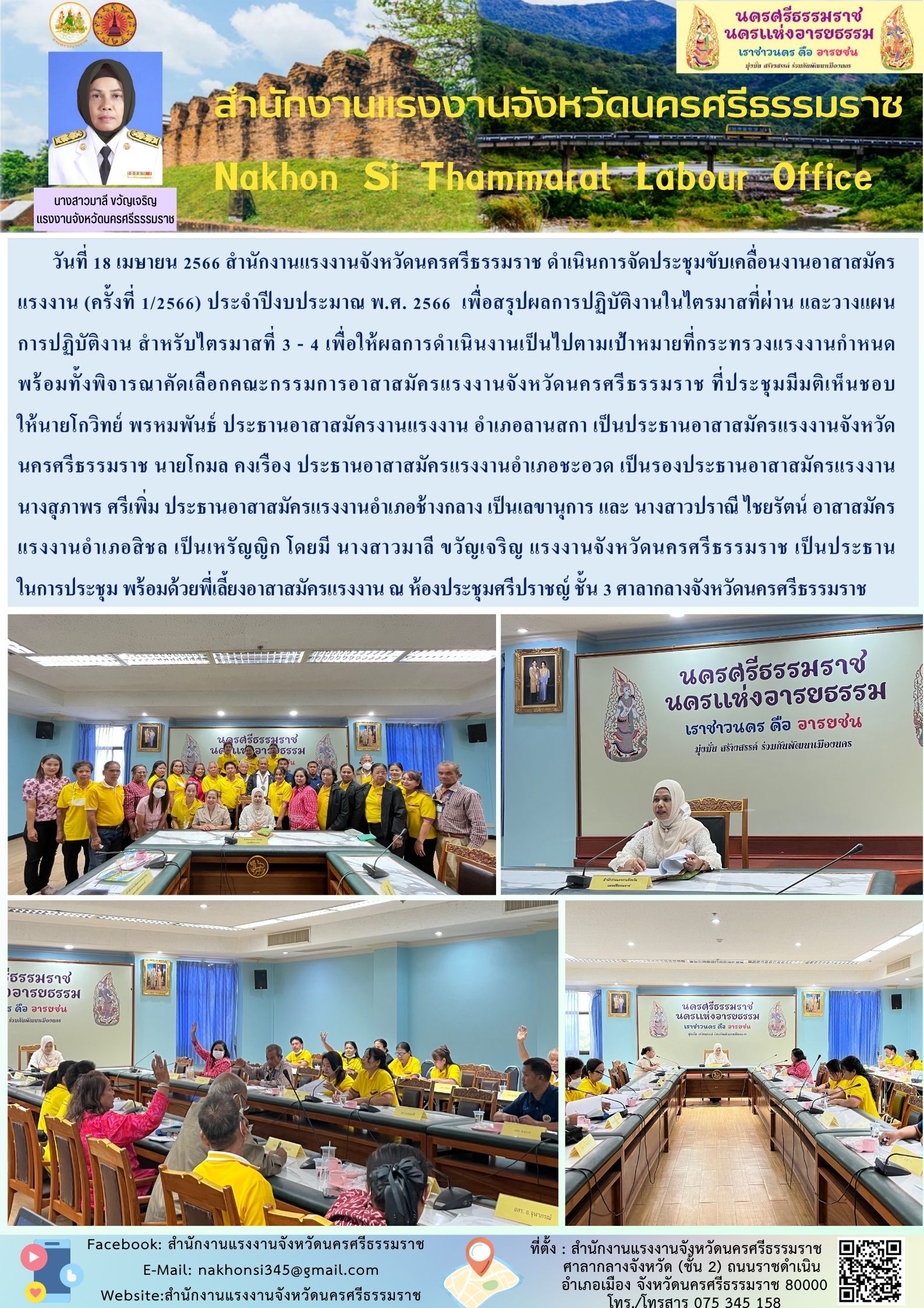 สรจ.นครศรีธรรมราช ดำเนินการจัดประชุมขับเคลื่อนงานอาสาสมัครแรงงาน (ครั้งที่ 1/2566) ประจำปีงบประมาณ พ.ศ. 2566