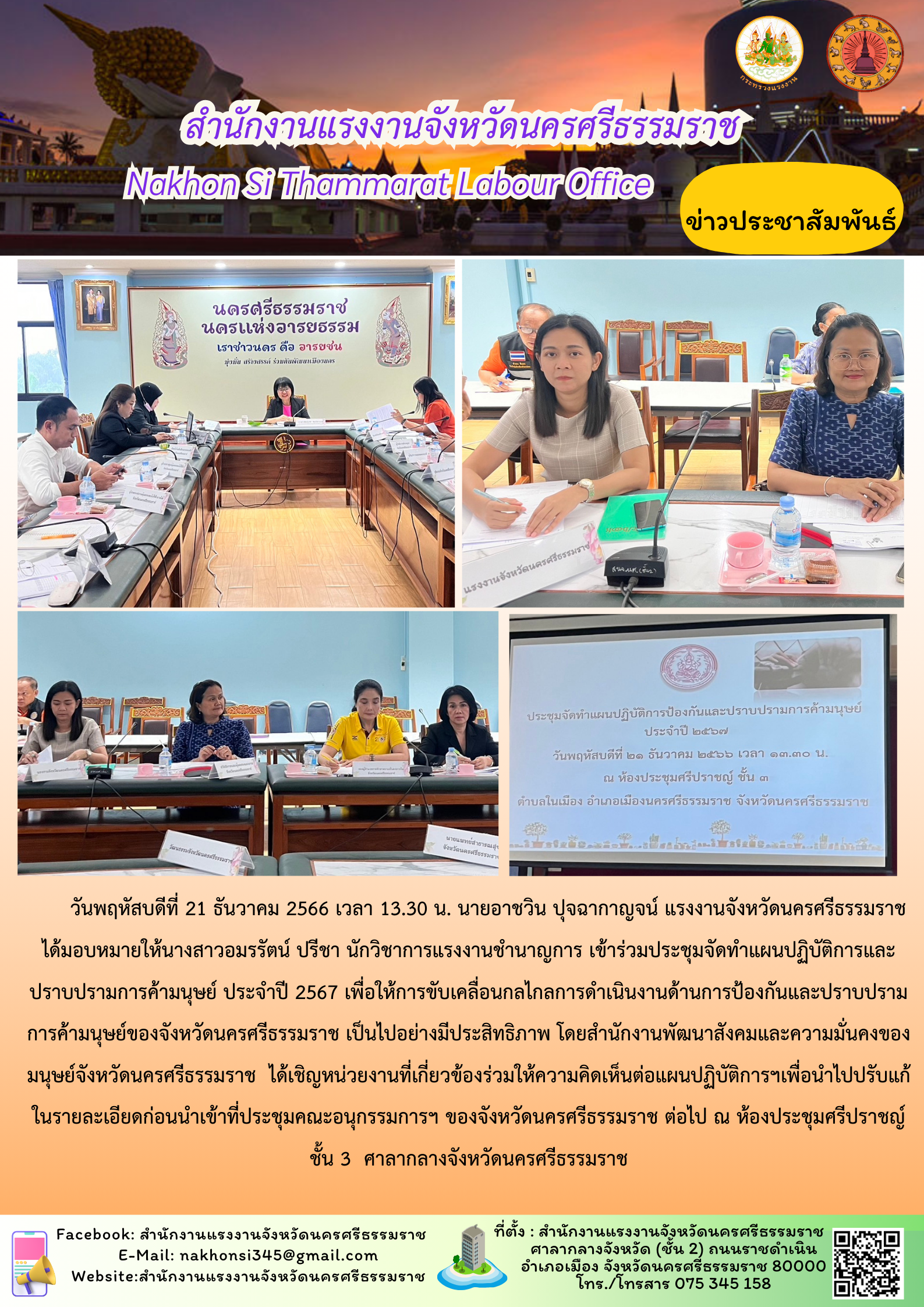 สรจ.นครศรีธรรมราช เข้าร่วมประชุมจัดทำแผนปฏิบัติการและปราบปรามการค้ามนุษย์ ประจำปี 2567