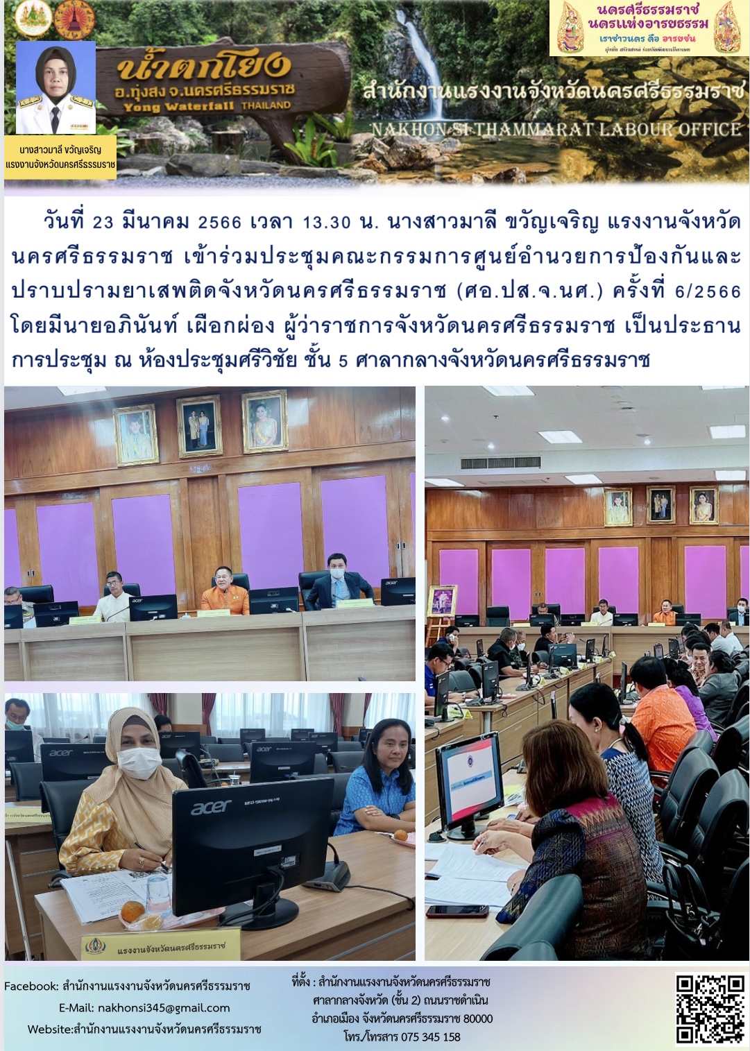 สรจ.นครศรีธรรมราช เข้าร่วมประชุมคณะกรรมการศูนย์อำนวยการป้องกันและปราบปรามยาเสพติดจังหวัดนครศรีธรรมราช (ศอ.ปส.จ.นศ.) ครั้งที่ 6/2566