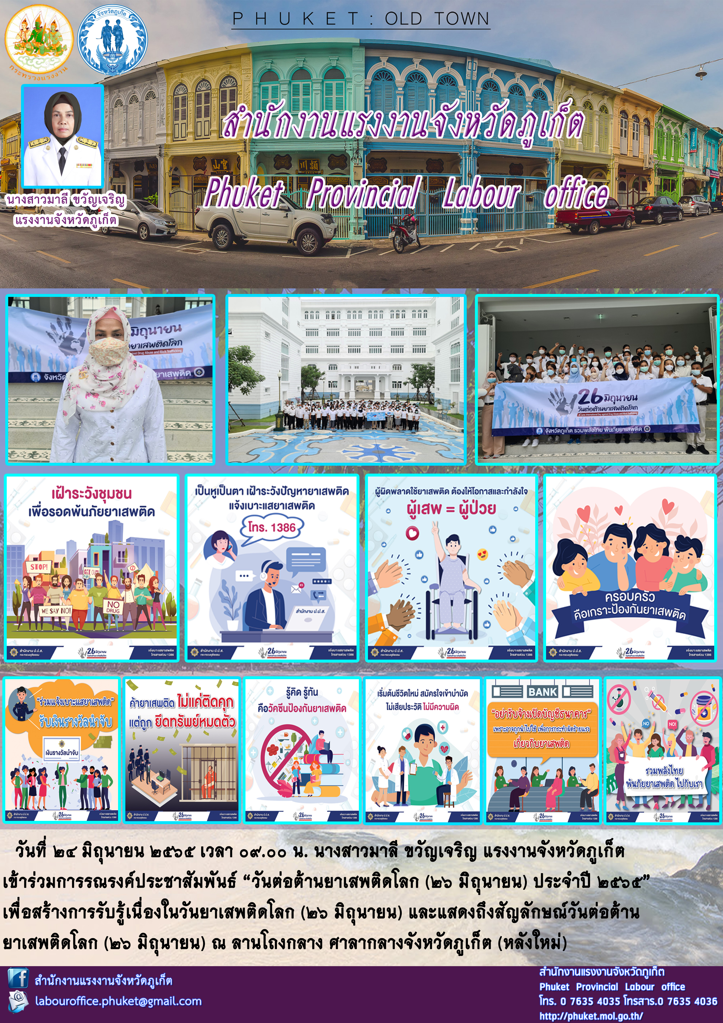 แรงงานจังหวัดภูเก็ต ร่วมการรณรงค์ประชาสัมพันธ์ “วันต่อต้านยาเสพติดโลก (26 มิถุนายน) ประจำปี 2565”