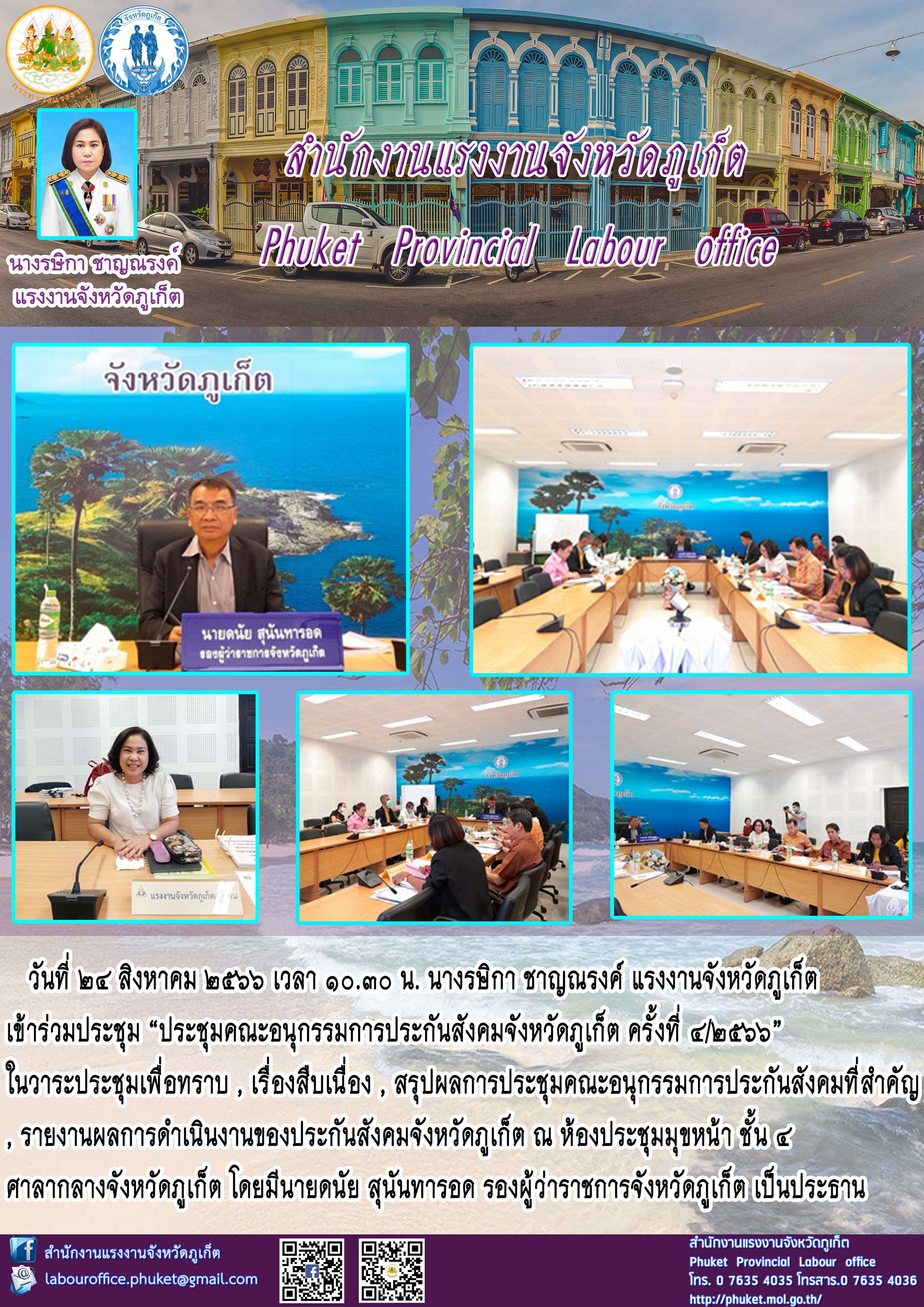 สรจ.ภูเก็ต เข้าร่วมประชุม “ประชุมคณะอนุกรรมการประกันสังคมจังหวัดภูเก็ต ครั้งที่ 4/2566”