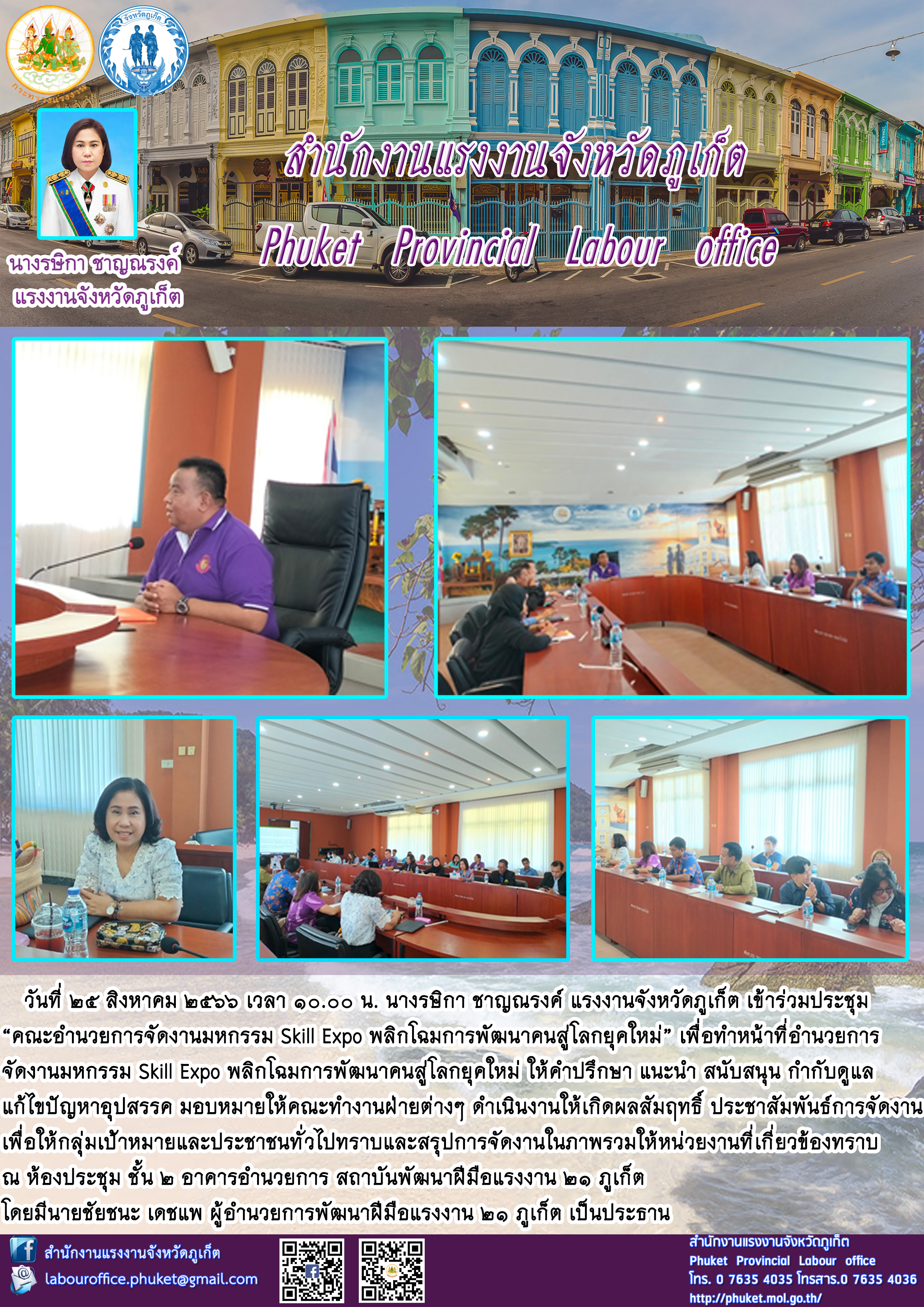 สรจ.ภูเก็ต เข้าร่วมประชุม “คณะอำนวยการจัดงานมหกรรม Skill Expo พลิกโฉมการพัฒนาคนสู่โลกยุคใหม่”