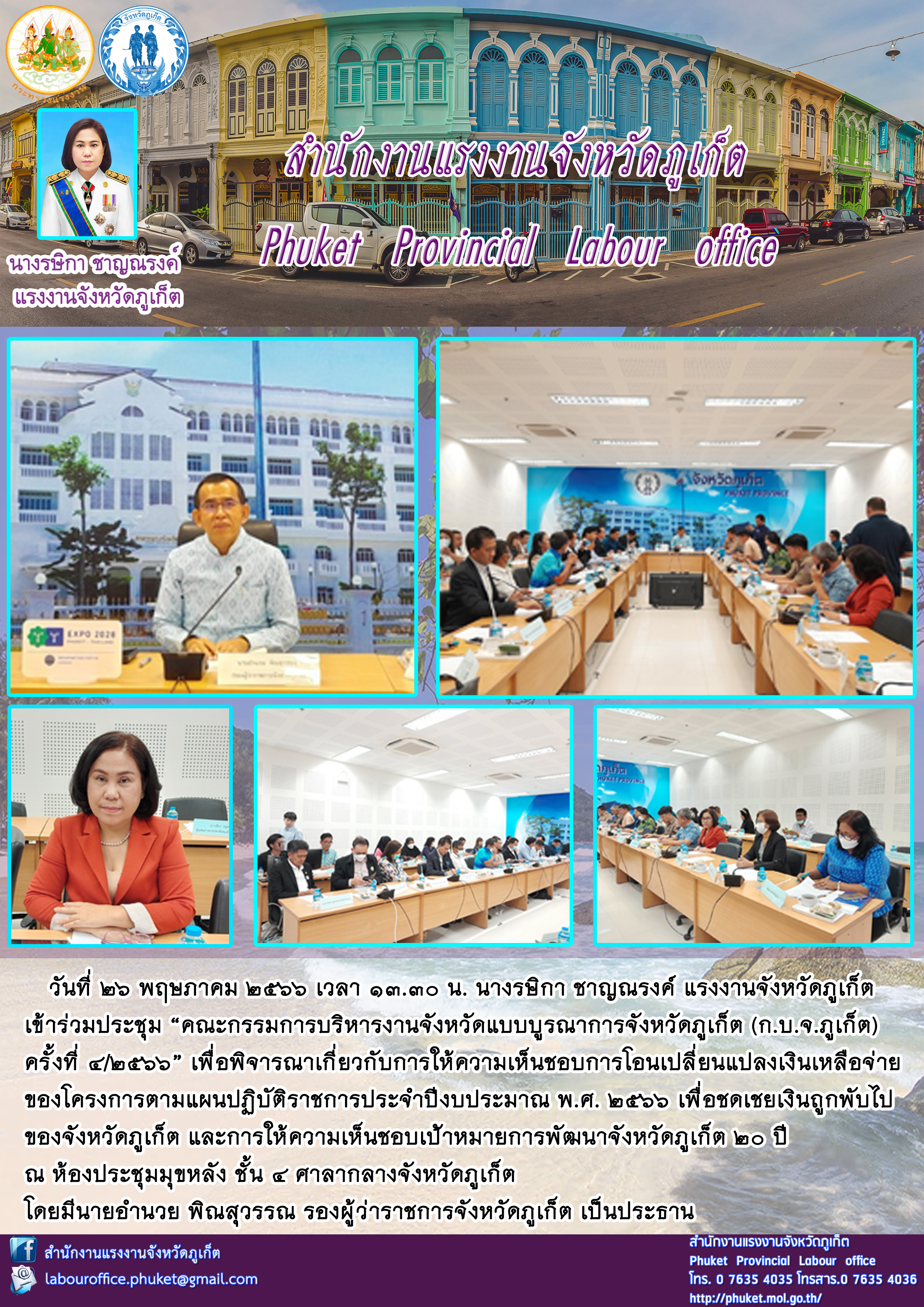สรจ.ภูเก็ต เข้าร่วมประชุม “คณะกรรมการบริหารงานจังหวัดแบบบูรณาการจังหวัดภูเก็ต (ก.บ.จ.ภูเก็ต) ครั้งที่ 4/2566”