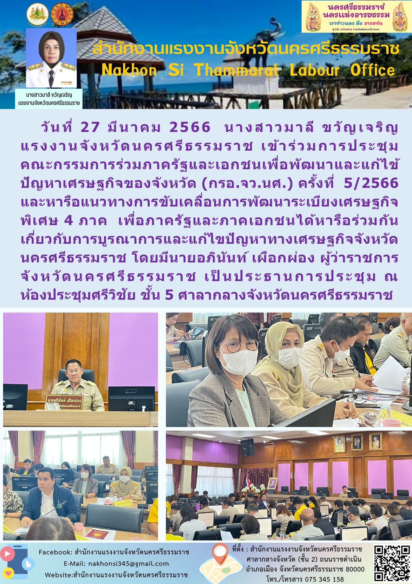 สรจ.นครศรีธรรมราช เข้าร่วมการประชุมคณะกรรมการร่วมภาครัฐและเอกชนเพื่อพัฒนาและแก้ไข้ปัญหาเศรษฐกิจของจังหวัด (กรอ.จว.นศ.) ครั้งที่ 5/2566 และหารือแนวทางการขับเคลื่อนการพัฒนาระเบียงเศรษฐกิจพิเศษ 4 ภาค