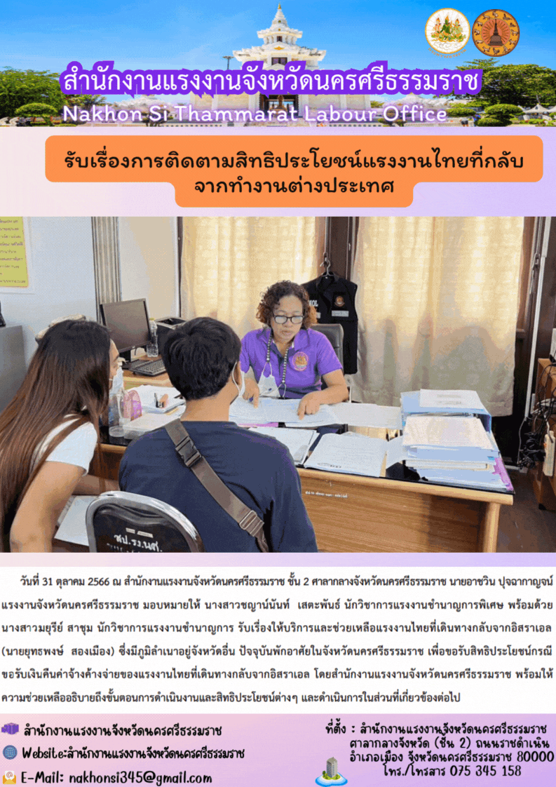 สรจ.นครศรีธรรมราช รับเรื่องให้บริการและช่วยเหลือแรงงานไทยที่เดินทางกลับจากอิสราเอล