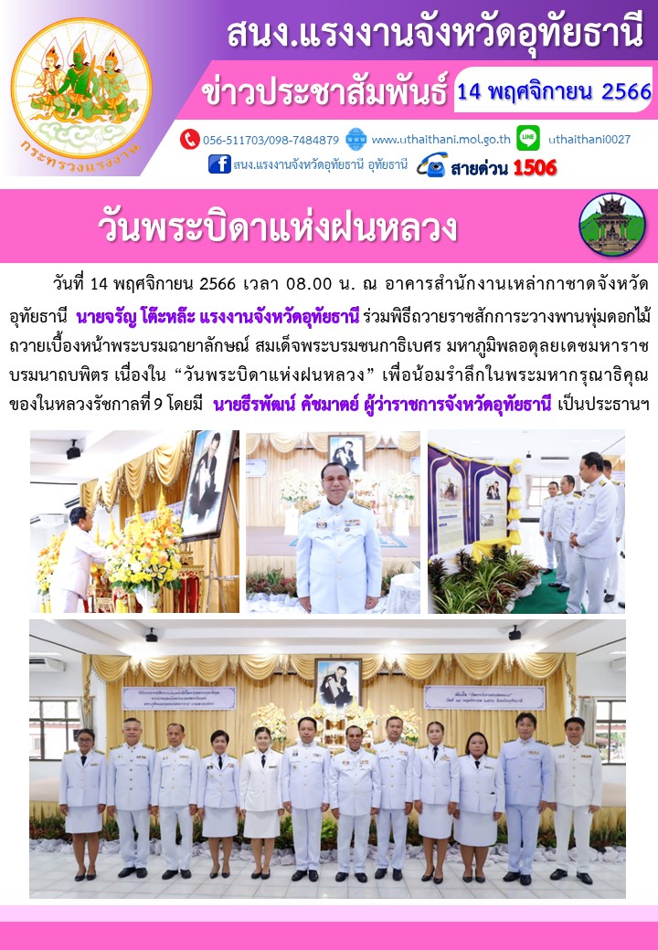สรจ.อุทัยธานี ร่วมพิธีถวายราชสักการะวางพานพุ่มดอกไม้ วันพระบิดาแห่งฝนหลวง