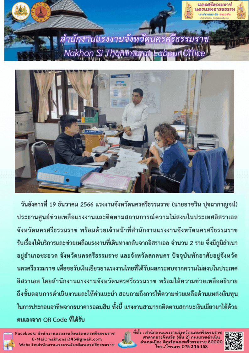 สรจ.นครศรีธรรมราช รับเรื่องให้บริการและช่วยเหลือแรงงานที่เดินทางกลับจากอิสราเอล จำนวน 2 ราย