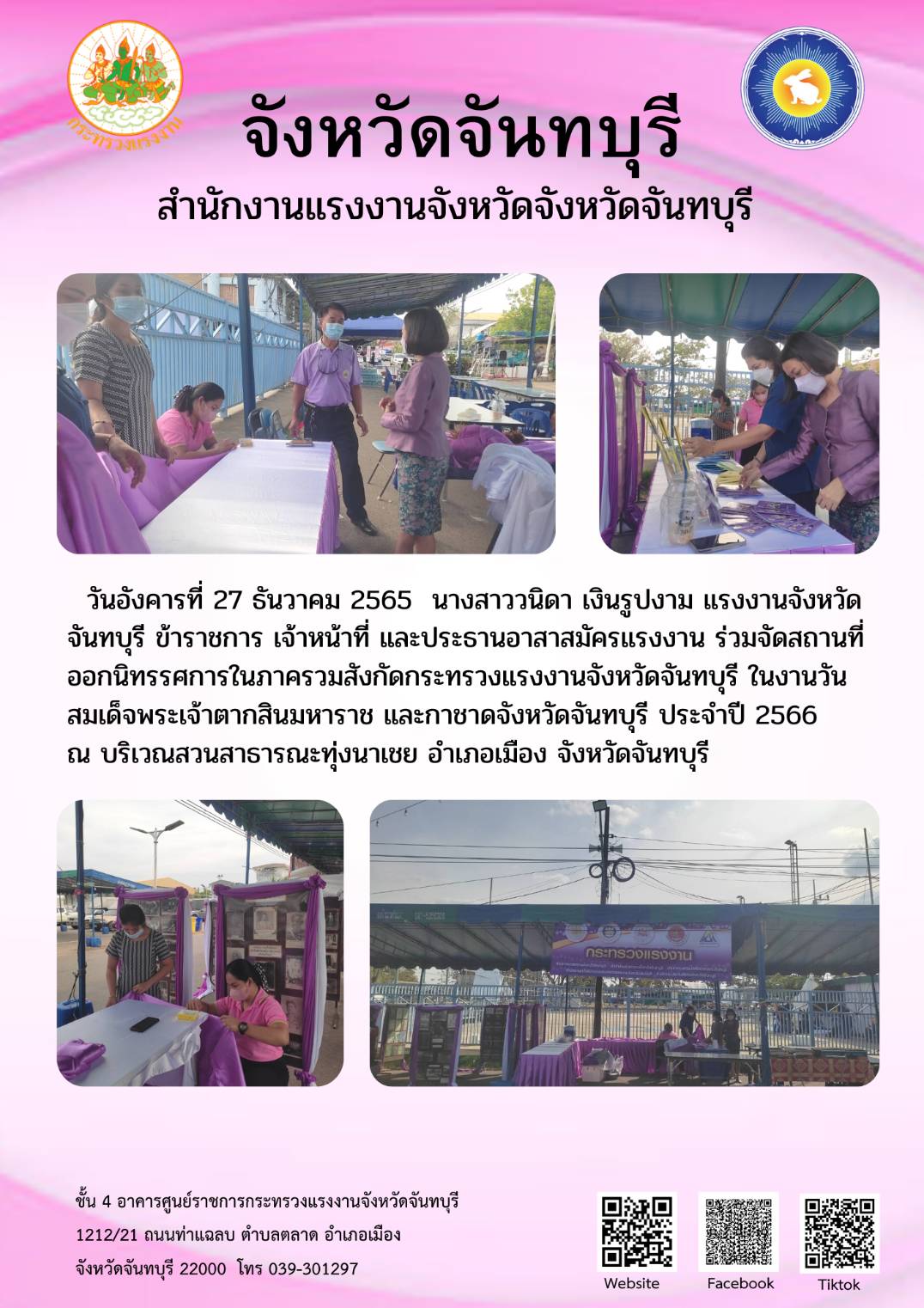 แรงงานจังหวัดจันทบุรี ร่วมจัดสถานที่ออกนิทรรศการในภาครวมสังกัดกระทรวงแรงงานจังหวัดจันทบุรี ในงานวันสมเด็จพระเจ้าตากสินมหาราช และกาชาดจังหวัดจันทบุรี ประจำปี 2566