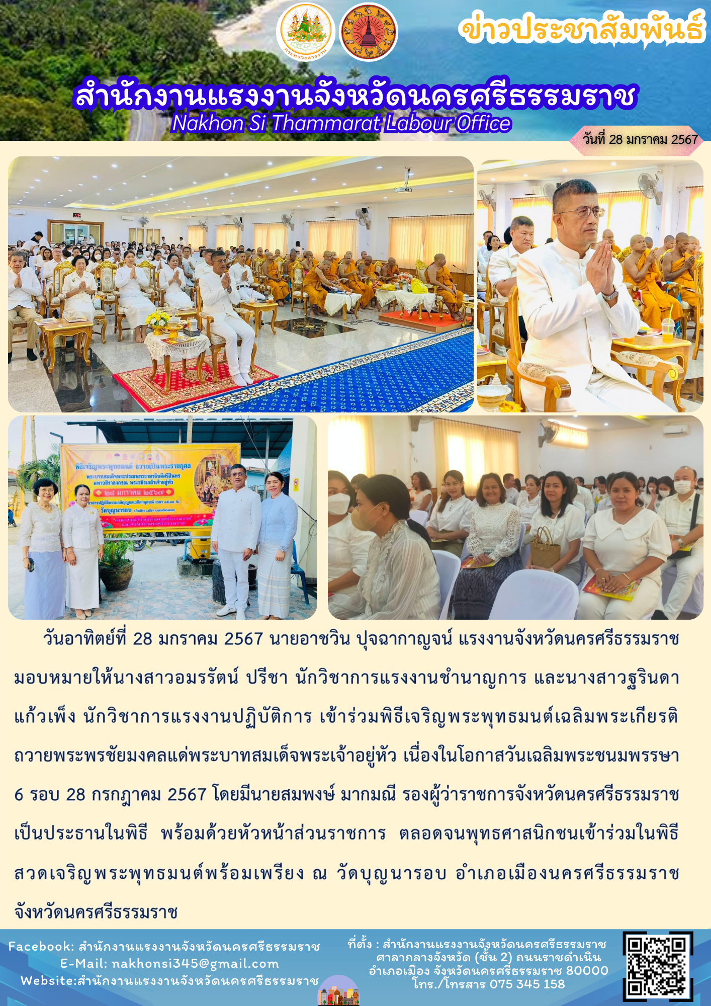 สรจ.นครศรีธรรมราช เข้าร่วมพิธีเจริญพระพุทธมนต์เฉลิมพระเกียรติถวายพระพรชัยมงคลแด่พระบาทสมเด็จพระเจ้าอยู่หัว เนื่องในโอกาสวันเฉลิมพระชนมพรรษา 6 รอบ 28 กรกฎาคม 2567