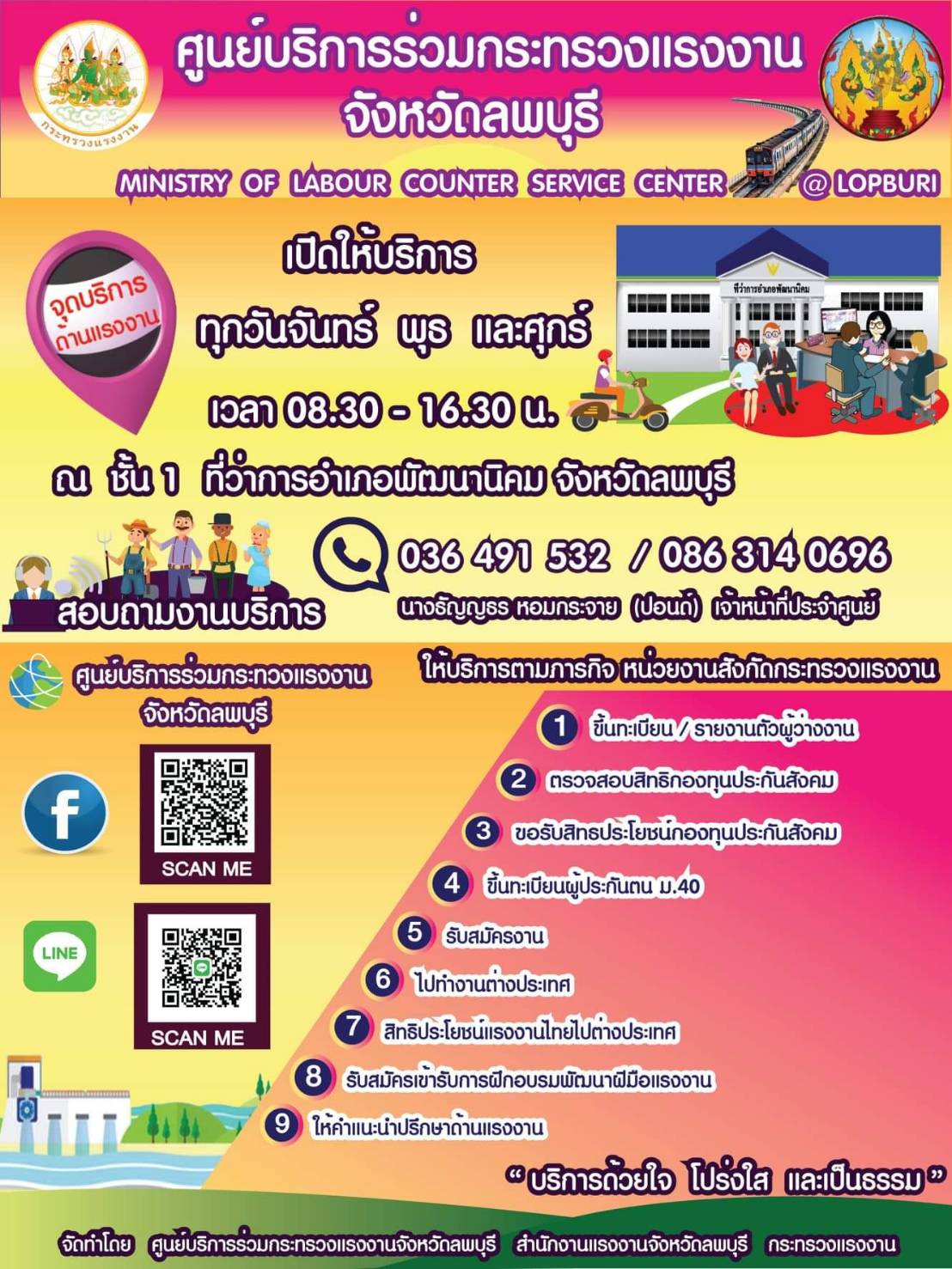 วันและเวลาทำการ ศูนย์บริการร่วมกระทรวงแรงงานจังหวัดลพบุรี