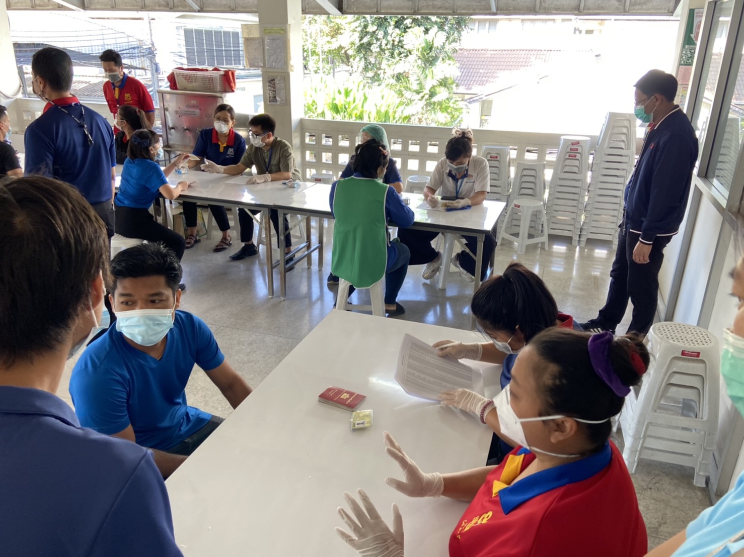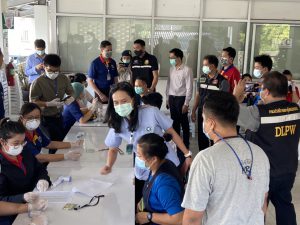 วันที่ 30 ธันวาคม 2563 เวลา 08.30 น. ศบค.รง.นบ. สาธารณสุขจังหวัด รพ.สต. ตำรวจ ปกครอง เทศบาลนคร และหน่วยงานที่เกี่ยวข้อง เข้าตรวจคัดกรองเชิงรุก เพื่อสอบสวนโรคแรงงานต่างด้าว ณ บริษัท ไนซ์แอพพาเรล จำกัด เลขที่ 7 ซอยงามวงศ์วาน 25/19 ตำบลบางเขน อำเภอเมืองนนทบุรี จังหวัดนนทบุรี โดยมีแรงงานต่างด้าวสัญชาติพม่าผ่านการตรวจ รวมทั้งสิ้น 215 คน