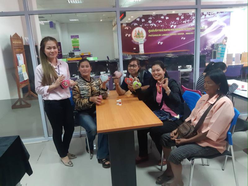 วันอังคารที่ 20 กุมภาพันธ์ 2561 สำนักงานแรงงานจังหวัดพิษณุโลก โดย ศูนย์บริการร่วมกระทรวงแรงงานจังหวัดพิษณุโลก จัดฝึกอบรมสาธิตอาชีพอิสระระยะสั้นให้แก่ประชาชนผู้สนใจต้องการที่จะไปประกอบอาชีพเสริมหลักสูตร "การทำพ่วงกุญแจกระเป๋าสตางค์" โดยมีผู้เข้ารับการสาธิตอาชีพ จำนวน 25 คน ณ ศูนย์บริการร่วมกระทรวงแรงงานจังหวัดพิษณุโลก (ห้างเทสโก้ โลตัส เอ็กซ์ตร้า ท่าทองพิษณุโลก)