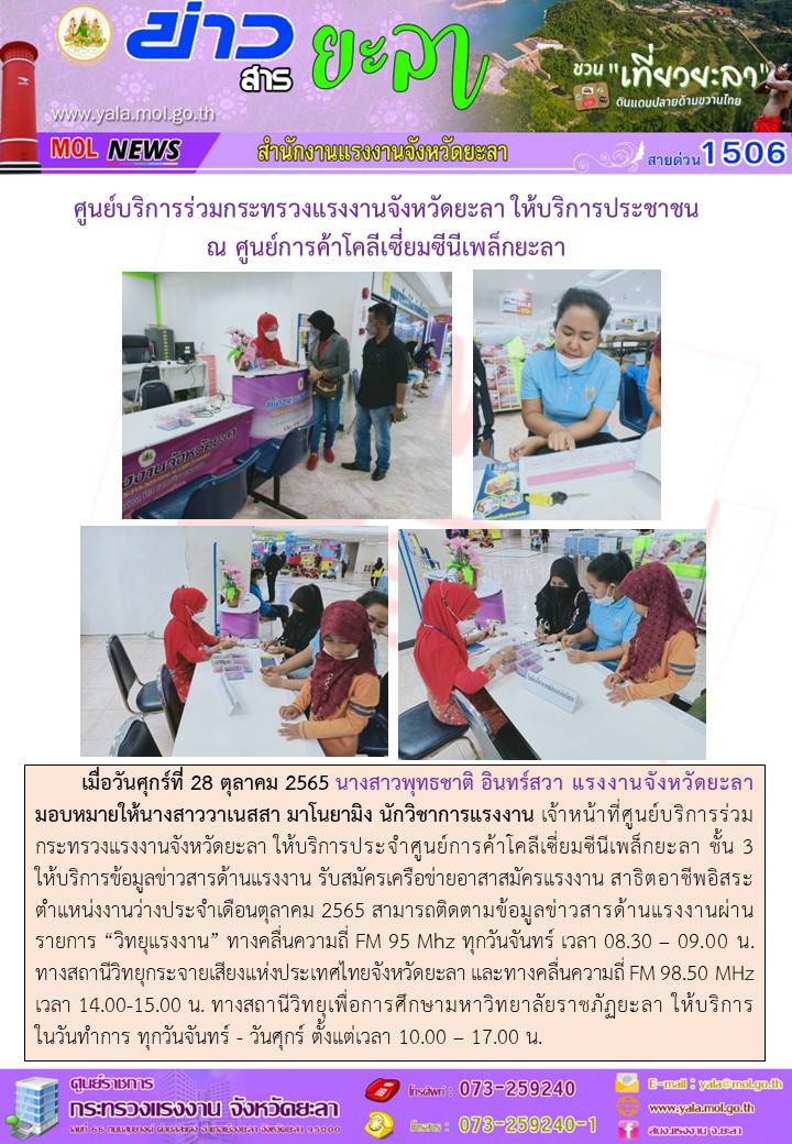 ศูนย์บริการร่วมกระทรวงแรงงานจังหวัดยะลา ให้บริการประชาชน ณ ศูนย์การค้าโคลีเซี่ยมซีนีเพล็กยะลา
