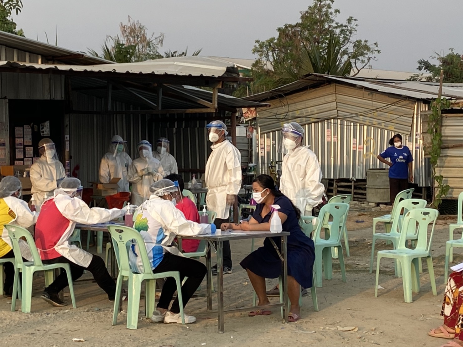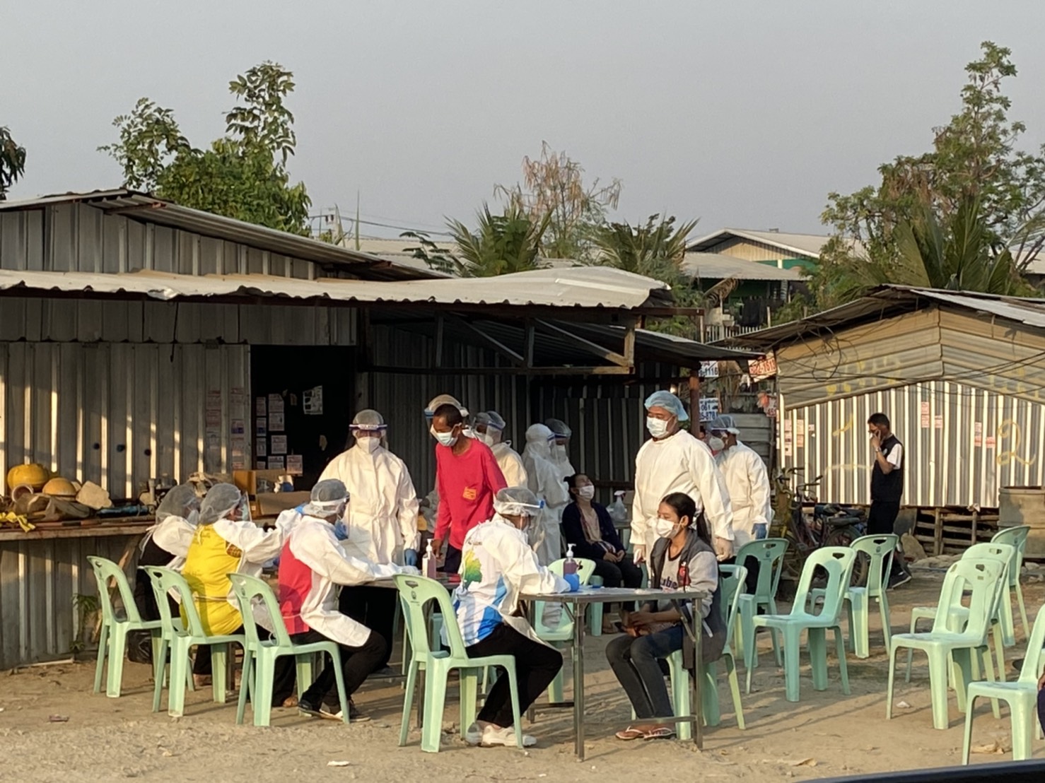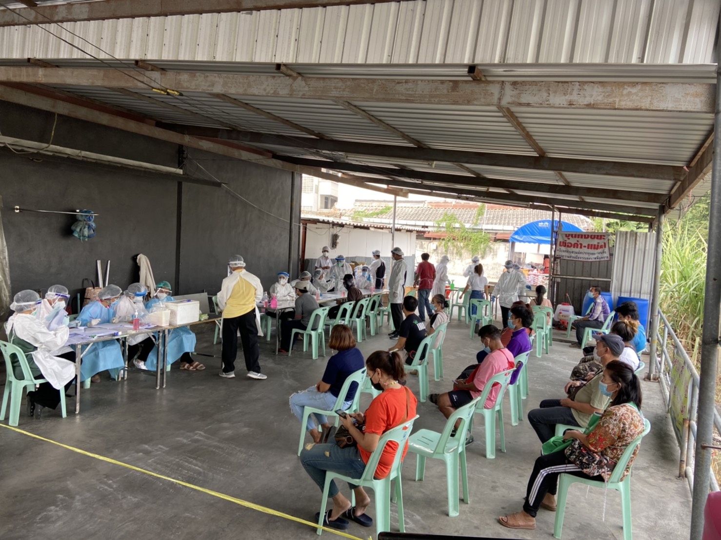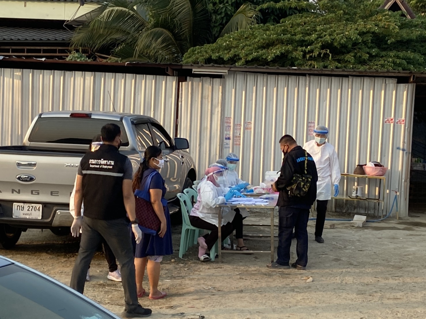 (2) ที่พักคนงานก่อสร้าง หมู่บ้านพลีโน ราชพฤกษ์ ม. 2 ต.พิมลราช อ.บางบัวทอง จ.นนทบุรี (เมียนม่า 42 คนกัมพูชา 32 คน ไทย 3 คน รวมทั้งสิ้น 77 คน)