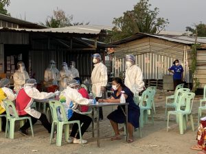 วันที่ 26 มกราคม 2564 ศบค.รง.นบ. ประกอบด้วย จัดหางานจังหวัดนนทบุรี แรงงานจังหวัดนนทบุรี และประกันสังคมจังหวัดนนทบุรี บูรณาการความร่วมมือกับ สาธารณสุขอำเภอบางบัวทอง ปกครองอำเภอบางบัวทอง ลงพื้นที่เข้าตรวจค้นหาผู้ป่วยโควิด 19 เชิงรุก ในพื้นที่อำเภอบางบัวทอง ดังนี้