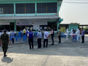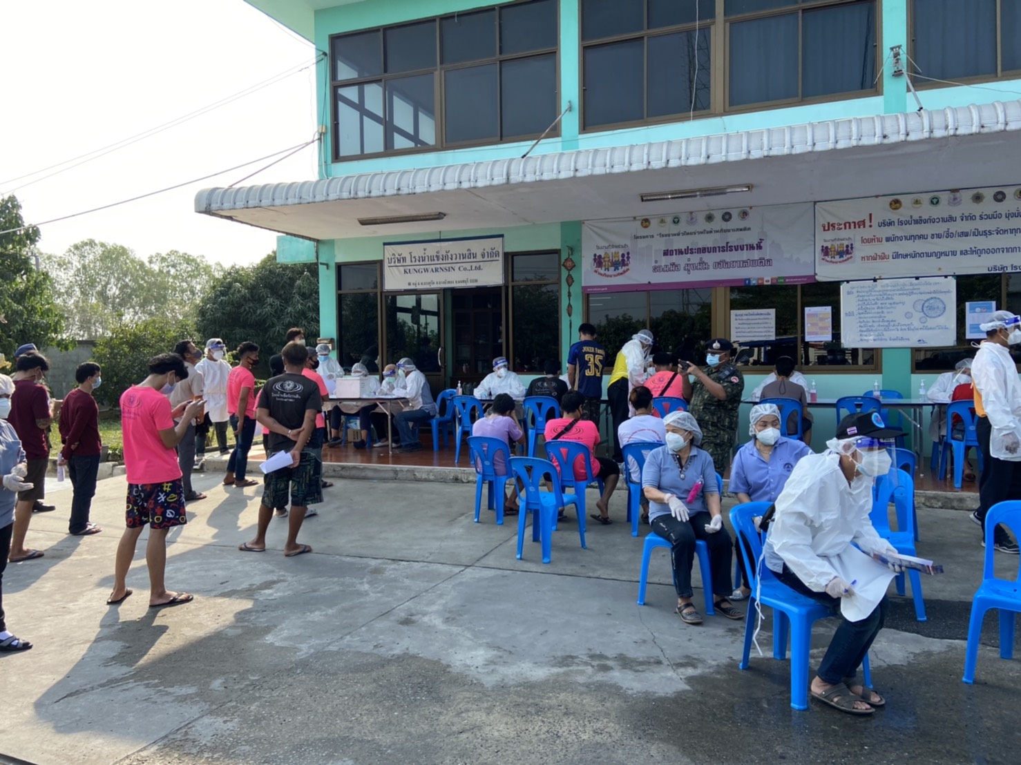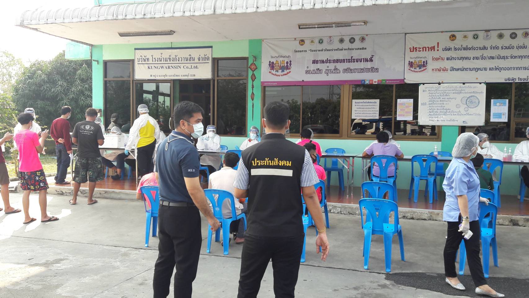 วันที่ 28 มกราคม 2564 ศบค.รง.นบ. ประกอบด้วย จัดหางานจังหวัดนนทบุรี แรงงานจังหวัดนนทบุรี ประกันสังคมจังหวัดนนทบุรี บูรณาการความร่วมมือกับ สาธารณสุขอำเภอบางบัวทอง ปกครองอำเภอบางบัวทอง และกำนัน ผู้ใหญ่บ้านในพื้นที่ ลงพื้นที่เข้าตรวจค้นหาผู้ป่วยโควิด 19 เชิงรุก ในพื้นที่อำเภอบางบัวทอง ดังนี้