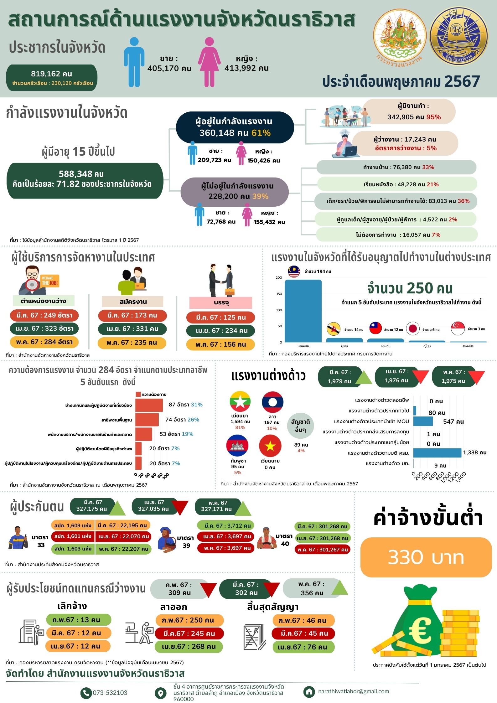 สถานการณ์ด้านแรงงานจังหวัดนราธิวาส ประจำเดือนพฤษภาคม 2567