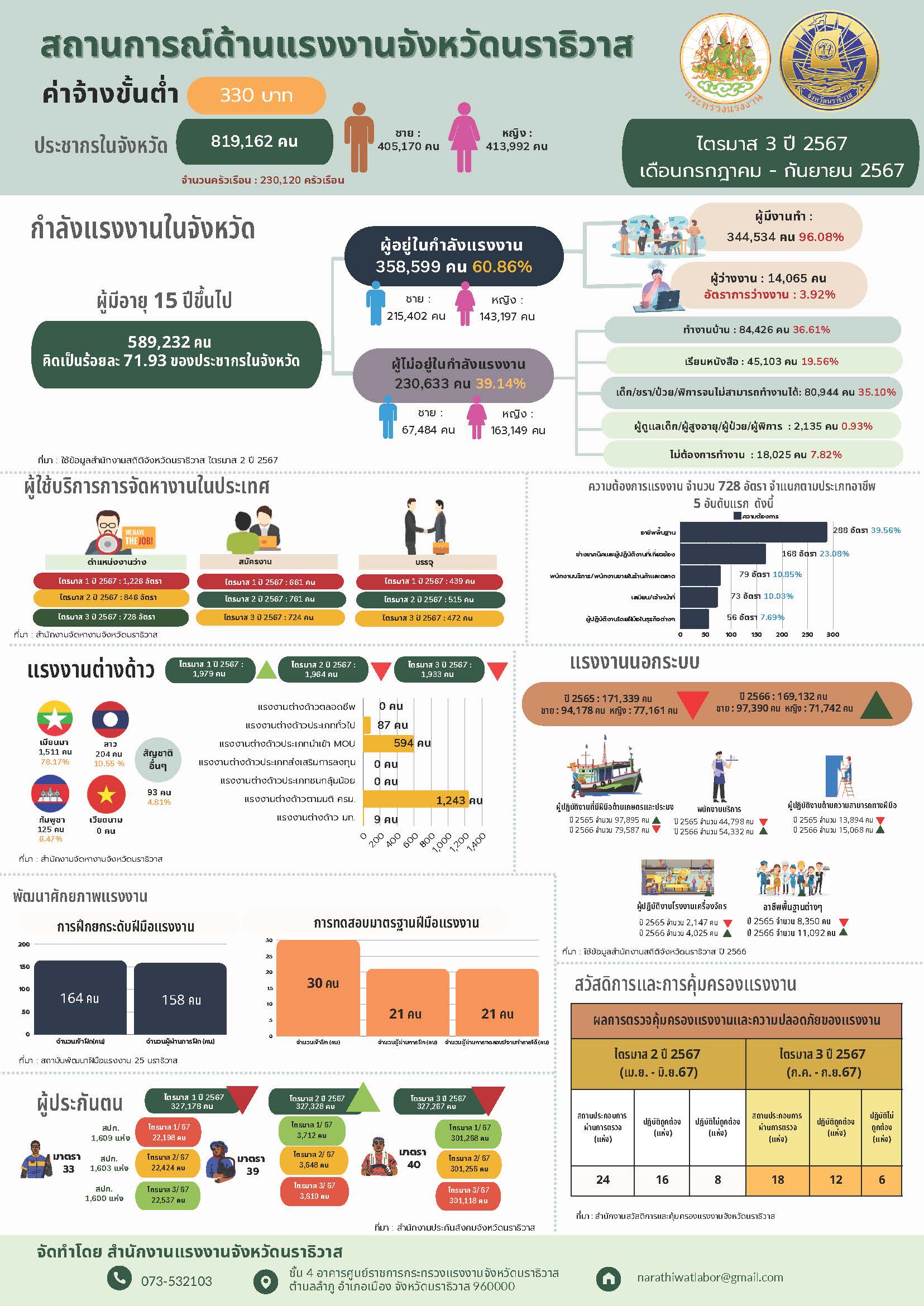 สถานการณ์ด้านแรงงานจังหวัดนราธิวาส ไตรมาส 3 ปี 2567 (กรกฎาคม – กันยายน 2567)