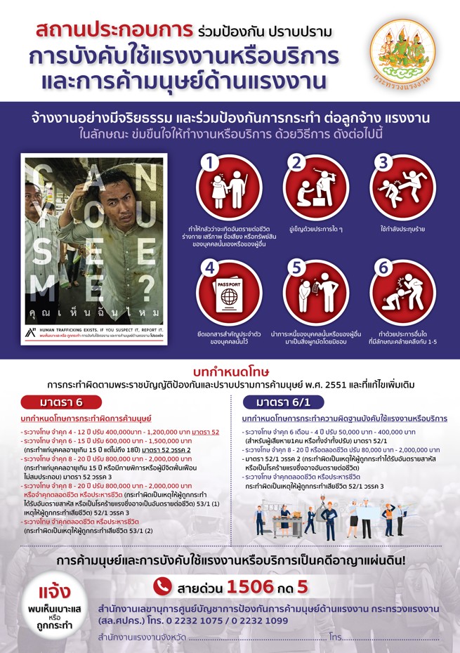 สถานประกอบการร่วมป้องกัน ปราบปรามการบังคับใช้แรงงานหรือบริการและการค้ามนุษย์ด้านแรงงาน