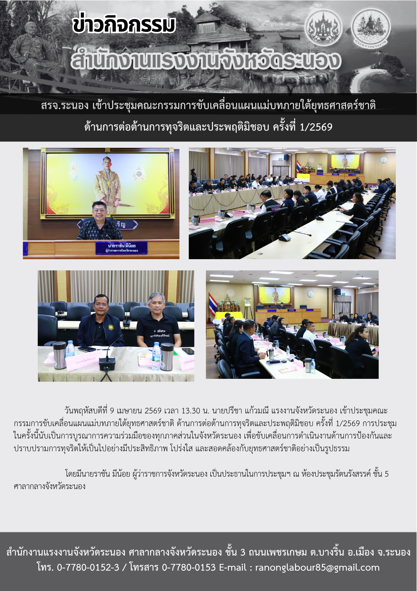 สรจ.ระนอง เข้าประชุมคณะกรรมการขับเคลื่อนแผนแม่บทภายใต้ยุทธศาสตร์ชาติด้านการต่อต้านการทุจริตและประพฤติมิชอบ ครั้งที่ 1/2569