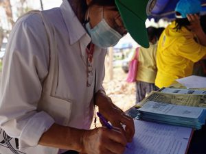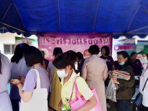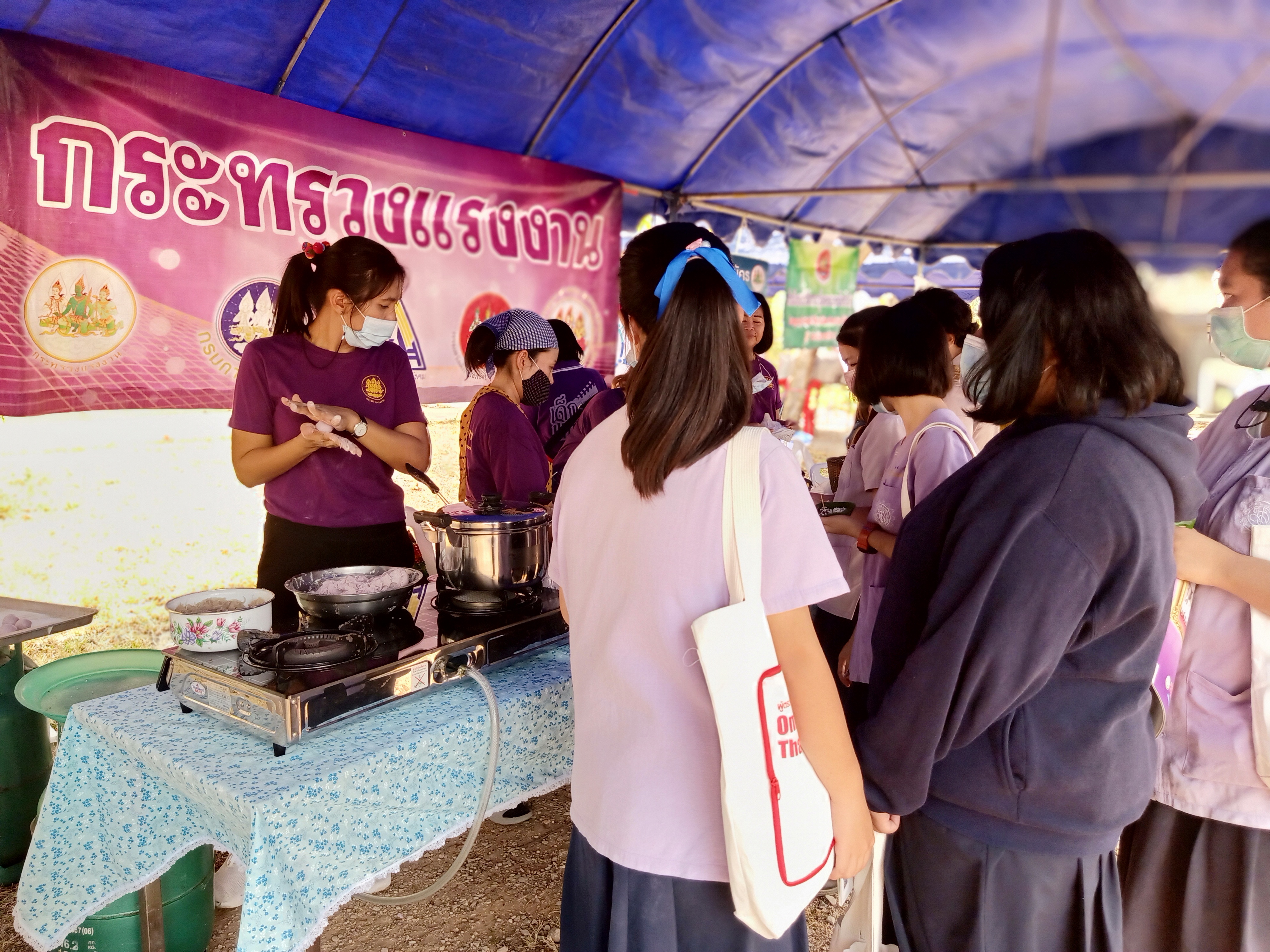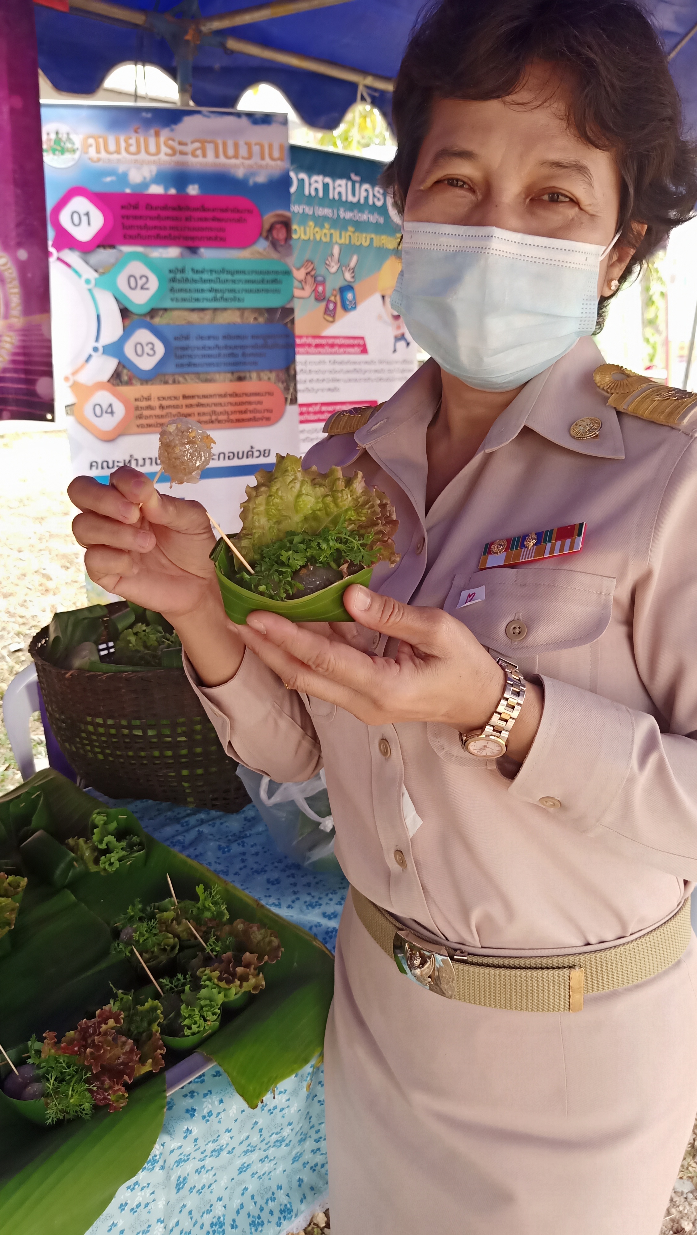 วันศุกร์ 12 มี.ค.2564 เวลา 08.00 น. น.ส.ปาริชาติ สวนใจ แรงงานจังหวัดลำปาง พร้อมด้วย น.ส.วราภรณ์ พ่วงสุข นักวิชาการแรงงานชำนาญการ และนายเผด็จ ชมภูศรี นักวิชาการแรงงาน เข้าร่วมโครงการจังหวัดลำปางเคลื่อนที่ ครั้งที่ 3 ประจำปีงบประมาณ พ.ศ.2564 ณ โรงเรียนแม่ทะประชาสามัคคี หมู่ 5 บ้านนาฟาน ตำบลดอนไฟ อำเภอแม่ทะ จังหวัดลำปาง โดยนำบริการสาธิตประกอบอาชีพอิสระ การทำขนมต้ม และสาคูไส้หมู เผยแพร่ประชาสัมพันธ์ข้อมูลข่าวสารภารกิจด้านแรงงาน/การป้องกันการแพร่ระบาดของโรคติดเชื้อไวรัสโคโรน่า 2019 /การป้องกันยาเสพติด/การป้องกันโรคพิษสุนัขบ้า แจกจ่ายประชาชน ซึ่งมีผู้มารับบริการ 134 คน