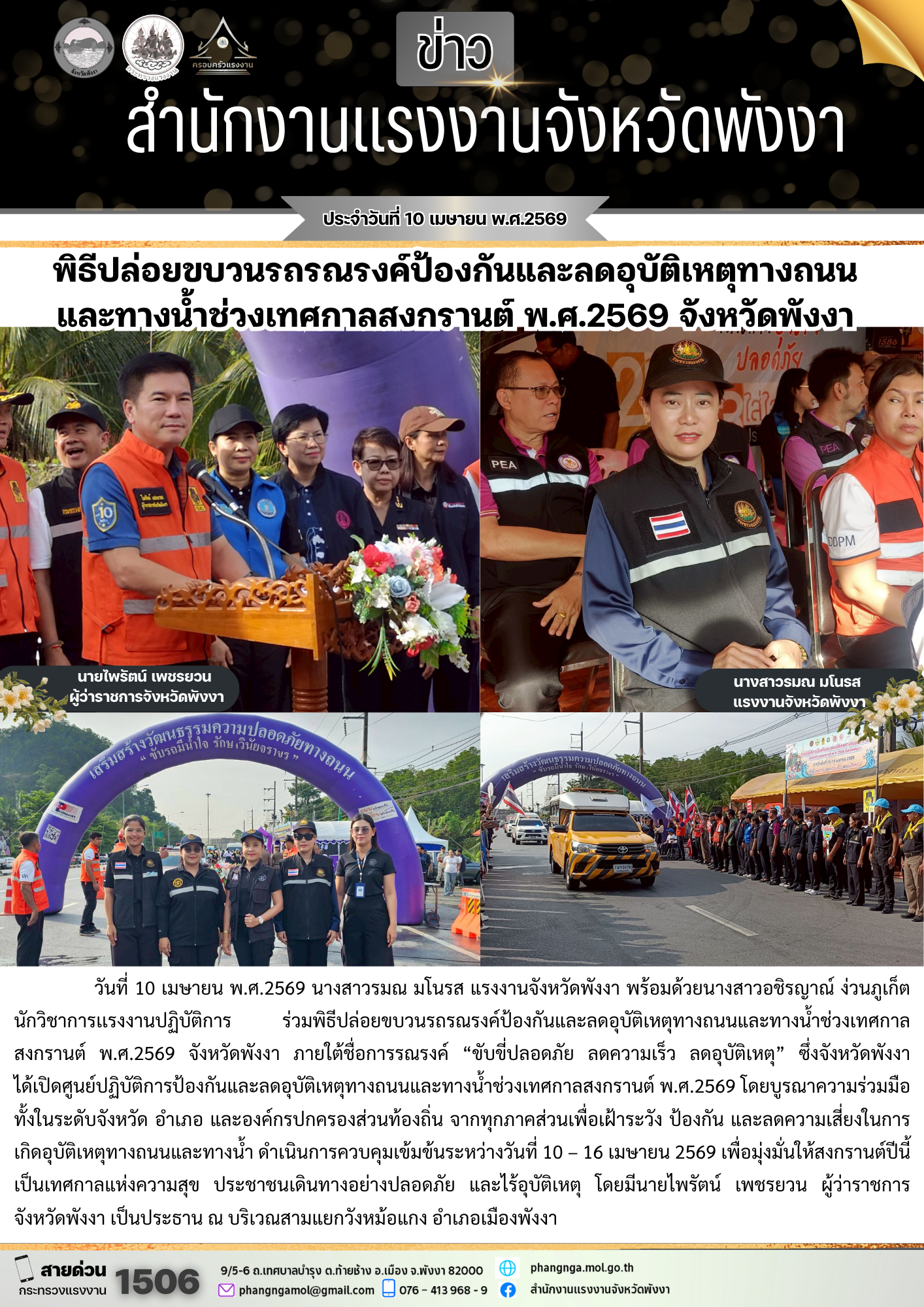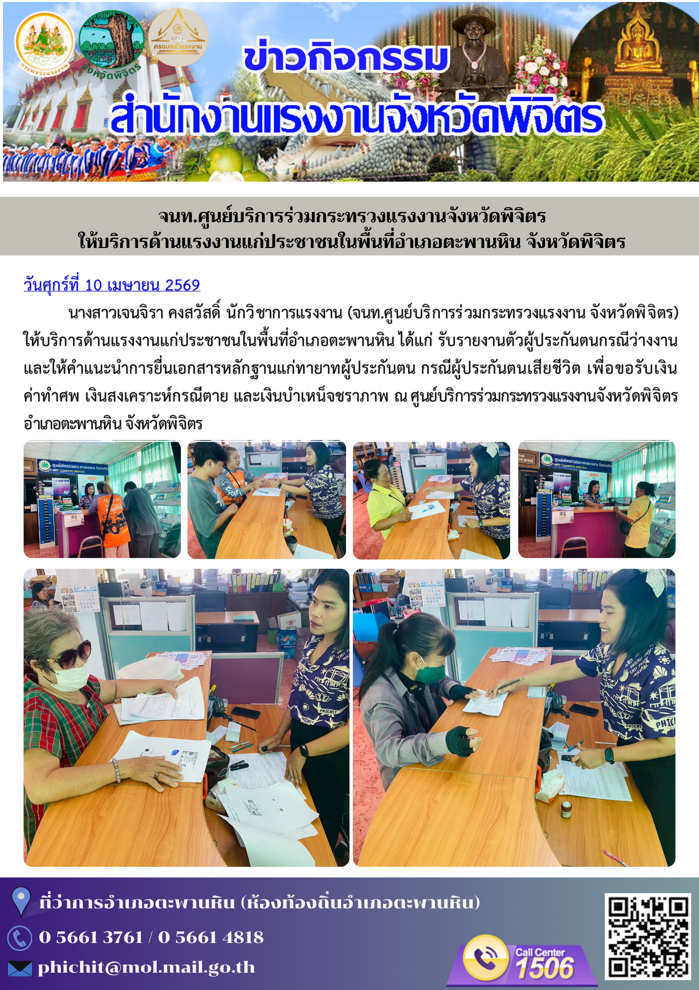 โอกาสนี้ นายสมศักดิ์ สุวรรณสุจริต ผู้ตรวจการแผ่นดินและคณะ เดินเยี่ยมชมบูธนิทรรศการ และการจัดกิจกรรม การให้บริการประชาชนของหน่วยงานสังกัดกระทรวงแรงงานจังหวัดลำปางอย่างทั่วถึงด้วย