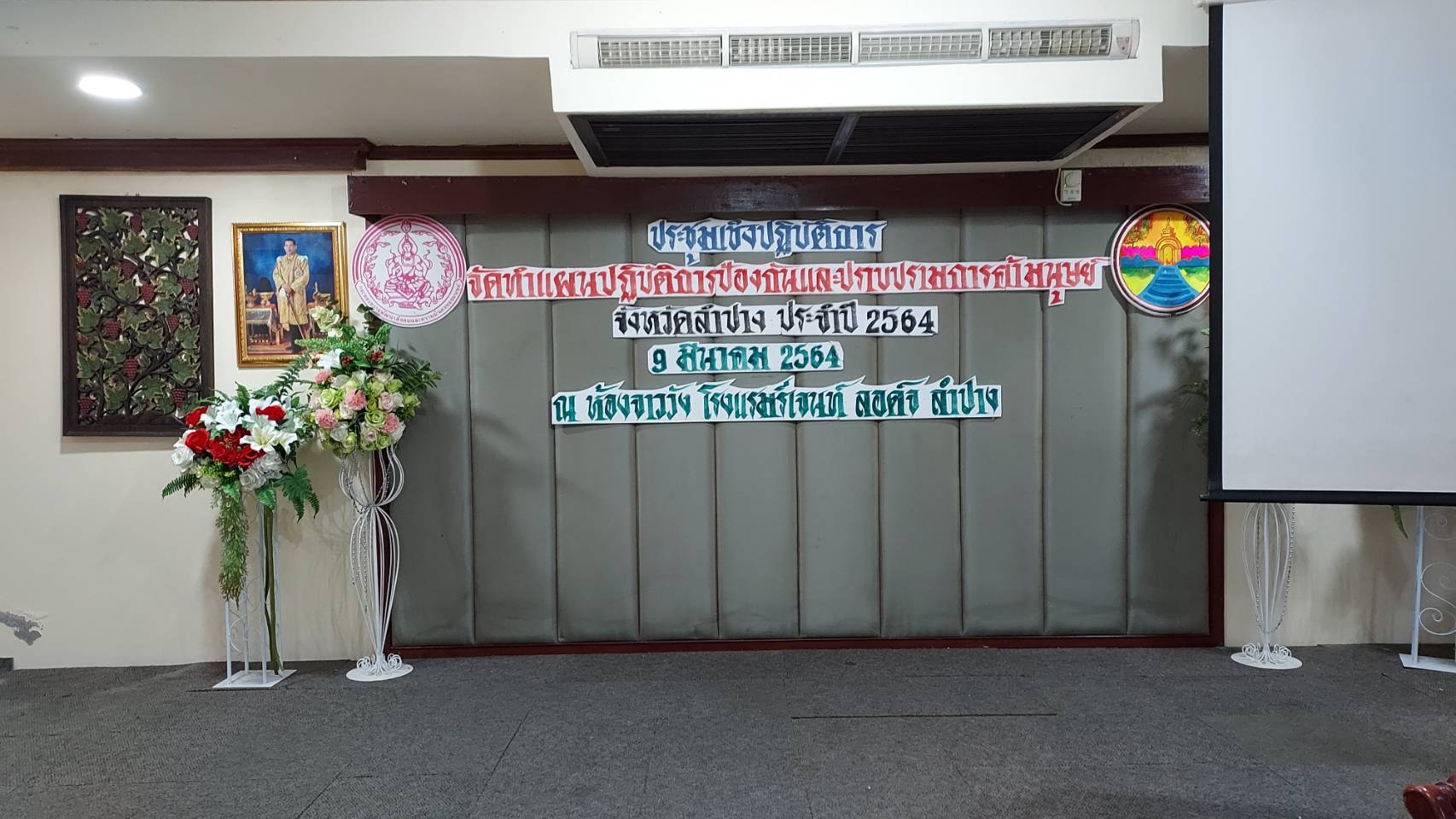 เมื่อวันที่ 9 มี.ค.2564 น.ส.ปาริชาติ สวนใจ แรงงานจังหวัดลำปาง มอบหมาย น.ส.วราภรณ์ พ่วงสุข นักวิชาการแรงงานชำนาญการ ร่วมประชุมเชิงปฏิบัติการจัดทำแผนปฏิบัติการป้องกันและปราบปรามการค้ามนุษย์จังหวัดลำปาง ประจำปี 2564 ณ ห้องจาววัง โรงแรมรีเจนท์ ลอด์จ อำเภอเมืองลำปาง จังหวัดลำปาง เพื่อร่วมกันจัดทำแผนและเป็นการส่งเสริมการดำเนินงานด้านการป้องกัน ปราบปรามและคุ้มครองช่วยเหลือผู้เสียหายจากการค้ามนุษย์ จัดโดย สำนักงานพัฒนาสังคมและความมั่นคงของมนุษย์จังหวัดลำปาง