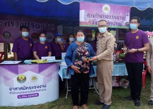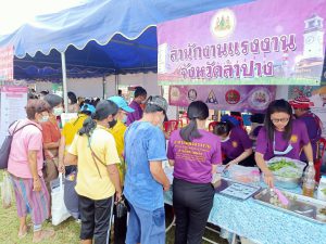 วันพฤหัสบดีที่ 25 มี.ค.2564 เวลา 08.00 น. น.ส.ปาริชาติ สวนใจ แรงงานจังหวัดลำปาง มอบหมาย นางสาวมยุรี ปัญญาแก้ว นักวิชาการแรงงานชำนาญการ นายเผด็จ ชมภูศรี นักวิชาการแรงงาน และนางศิรินาฎ ชมภูงาม เจ้าพนักงานธุรการ อาสาสมัครแรงงานในพื้นที่ อ.แม่พริก เข้าร่วมโครงการจังหวัดลำปางเคลื่อนที่ ครั้งที่ 4 ประจำปีงบประมาณ พ.ศ.2564 ณ เทศบาลตำบลแม่ปุ หมู่ 3 ตำบลแม่ปุ อำเภอแม่พริก จังหวัดลำปาง โดยนำบริการสาธิตประกอบอาชีพอิสระ การทำขนมสาคูไส้หมูและข้าวเกรียบปากหม้อและประชาสัมพันธ์ภาระกิจงานหน่วยงานสังกัดกระทรวงแรงงาน โดยมีว่าที่พันตรีอดิศักดิ์ น้อยสุวรรณรองผู้ว่าราชการจังหวัดลำปางเดินทางมาเป็นประธานในงานดังกล่าว ซึ่งได้รับความสนใจจากประชาชนในพื้นที่เข้ารับบริการ 107 ราย