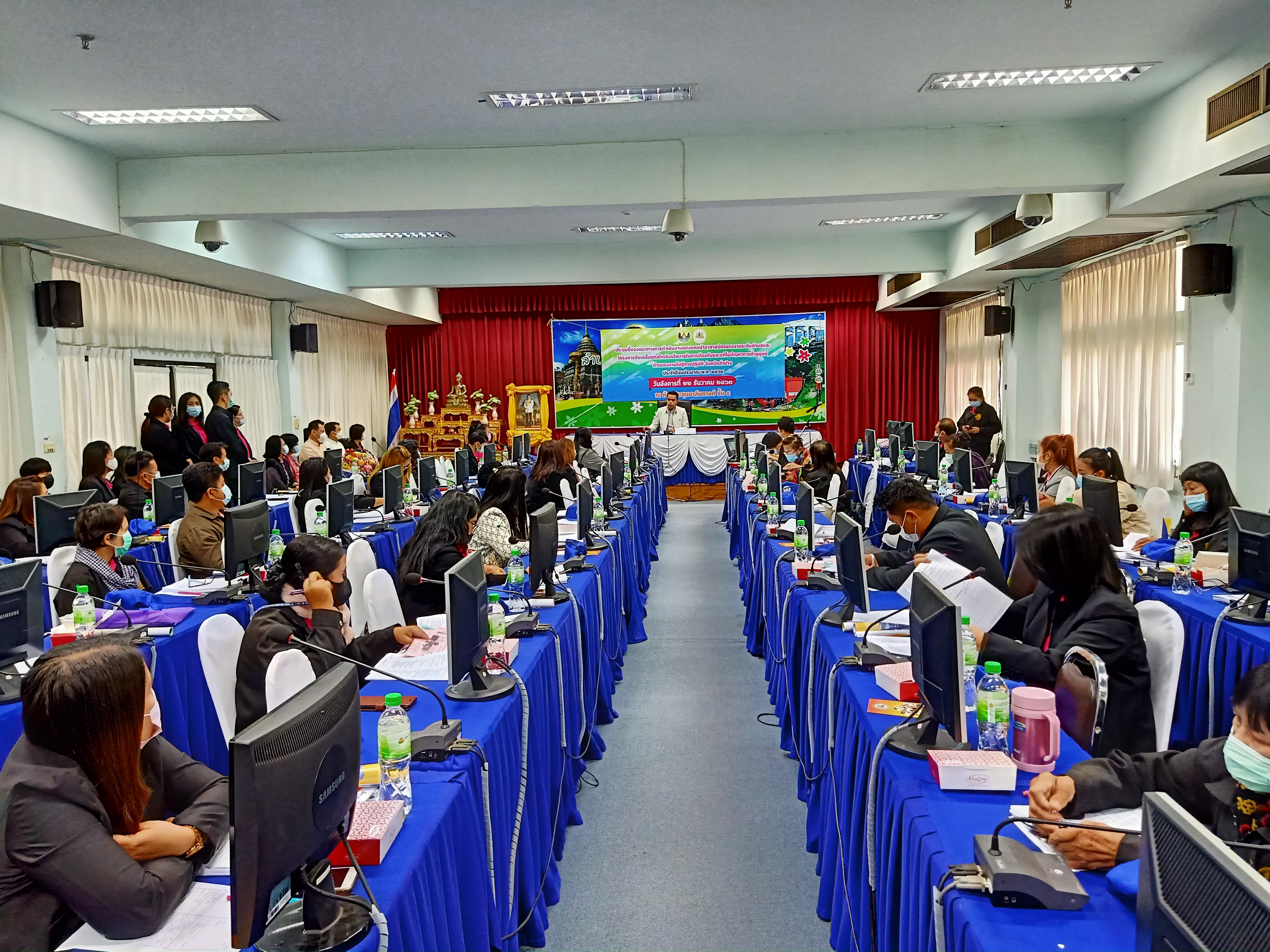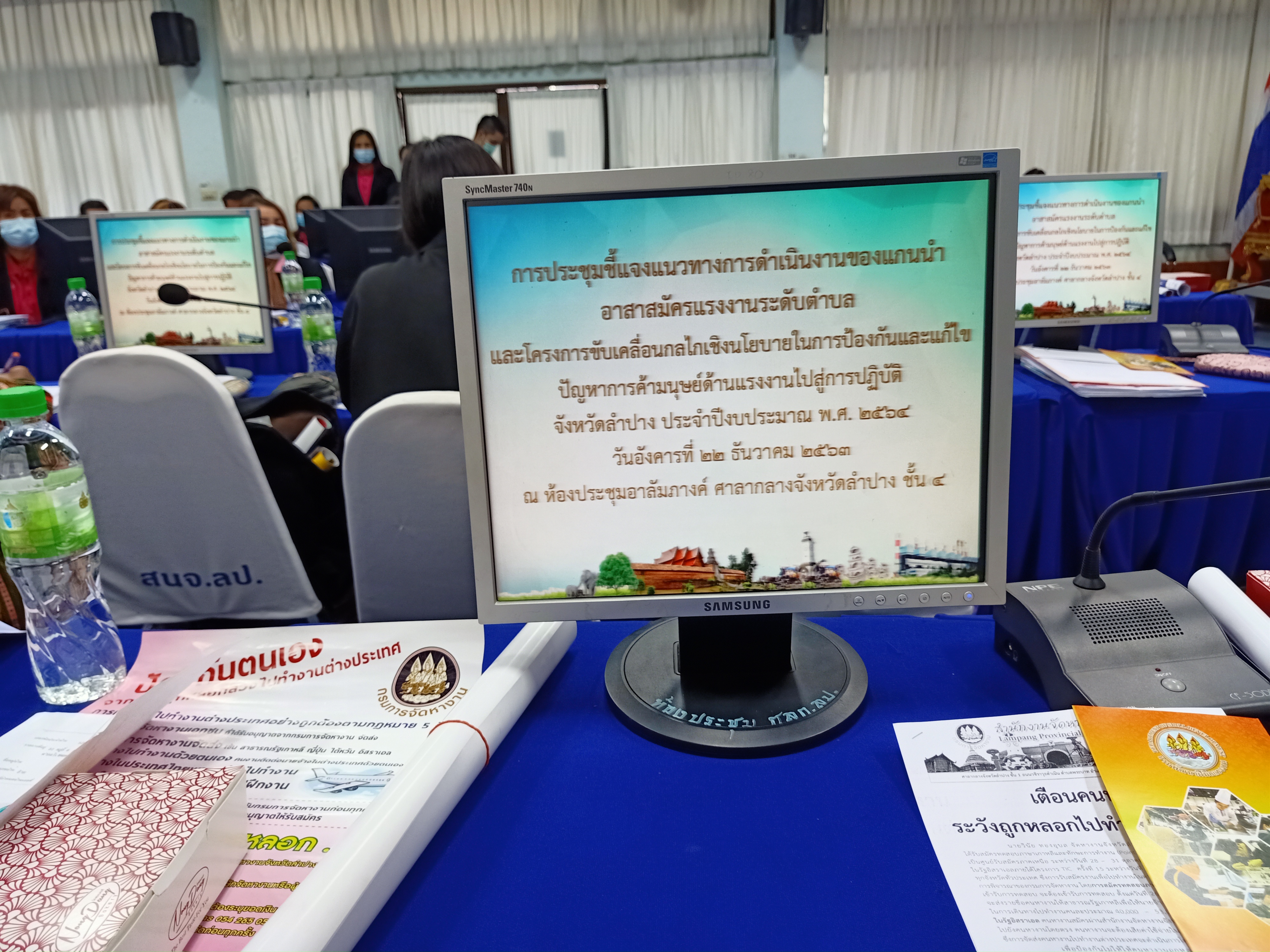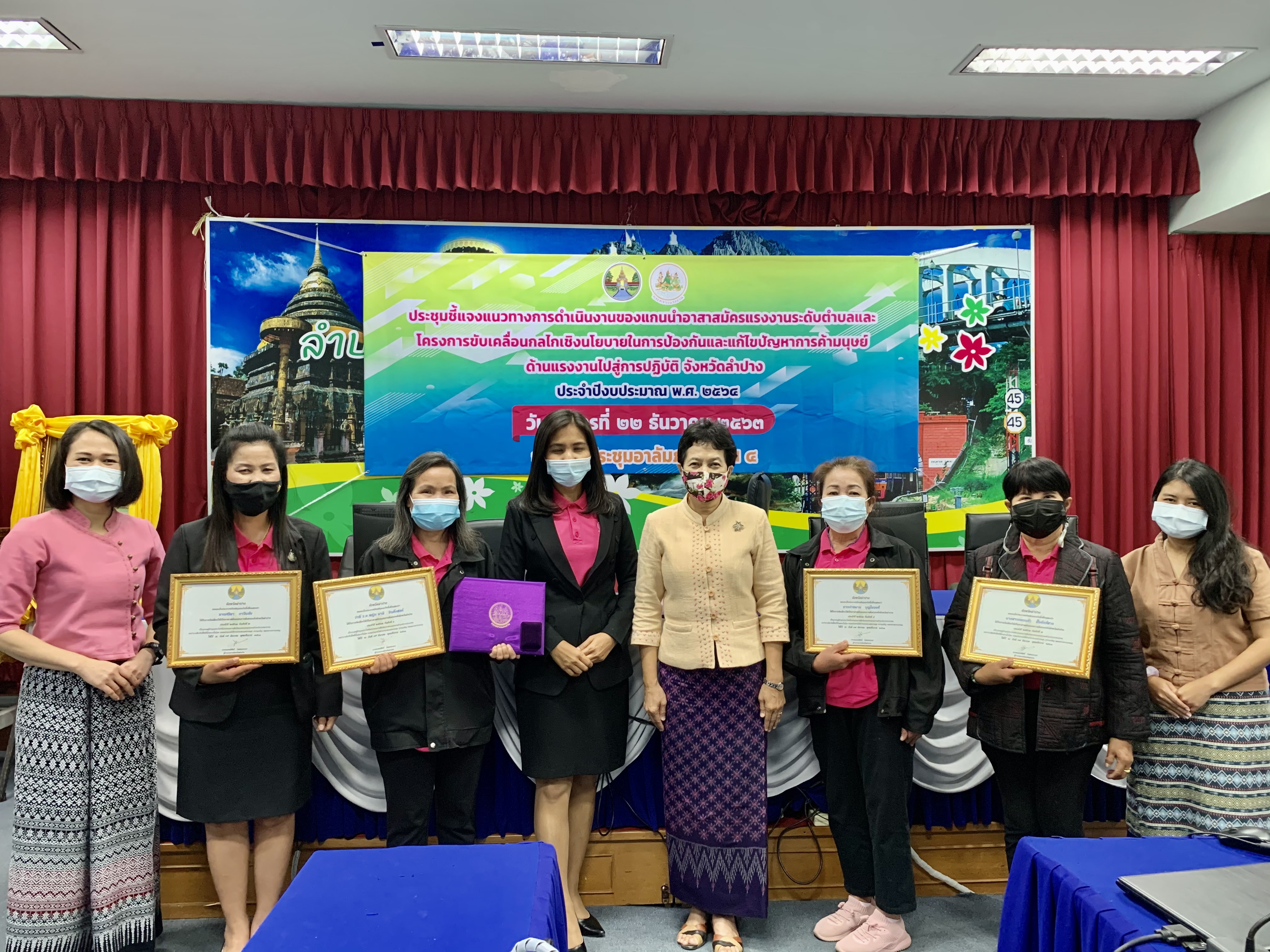 เมื่อวันที่ 22 ธ.ค.2563 เวลา 08.30 น. นายจำลักษ์ กันเพ็ชร์ รองผู้ว่าราชการจังหวัดลำปาง เป็นประธานพิธีเปิดการประชุมชี้แจงแนวทางการดำเนินงานของแกนนำอาสาสมัครแรงงานระดับตำบล และ โครงการขับเคลื่อนกลไกเชิงนโยบายในการป้องกันและแก้ไขปัญหาการค้ามนุษย์ด้านแรงงานไปสู่การปฏิบัติ จังหวัดลำปาง ประจำปีงบประมาณ พ.ศ.2564 ณ ห้องประชุมอาลัมภางค์ ศาลากลางจังหวัดลำปาง ชั้น 4 โดยมีวัตถุประสงค์เพื่อชี้แจงแนวทางการดำเนินงานของแกนนำอาสาสมัครแรงงานระดับตำบล ประจำปีงบประมาณ พ.ศ.2564 และมอบหมายภารกิจของหน่วยงานสังกัดกระทรวงแรงงาน เพื่อนำบริการด้านแรงงานลงสู่ประชาชนได้ตรงตามความต้องการอย่างทั่วถึง มีหัวหน้าส่วนราชการสังกัดกระทรวงแรงงานจังหวัดลำปางและผู้แทนร่วมพิธีเปิดโดยพร้อมเพรียงกัน และ น.ส.ปาริชาติ สวนใจ แรงงานจังหวัดลำปาง เป็นผู้กล่าวรายงาน ผู้เข้าร่วมประชุม 110 คน ทั้งนี้ นายจำลักษ์ กันเพ็ชร์ รองผู้ว่าราชการจังหวัดลำปาง ได้มอบประกาศเกียรติคุณให้แก่อาสาสมัครแรงงานดีเด่นประจำปี 2563 รวม 4 ราย ด้วยในโอกาสนี้