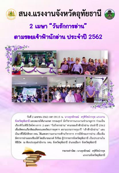 สนง.แรงงานจังหวัดอุทัยธานี ร่วมเป็นเกียรติเปิดพิธี ” วันรักการอ่าน ” ตามรอยเจ้าฟ้านักอ่าน ประจำปี 2562 ณ ห้องประชุมสำนักงาน กศน. จังหวัดอุทัยธานี