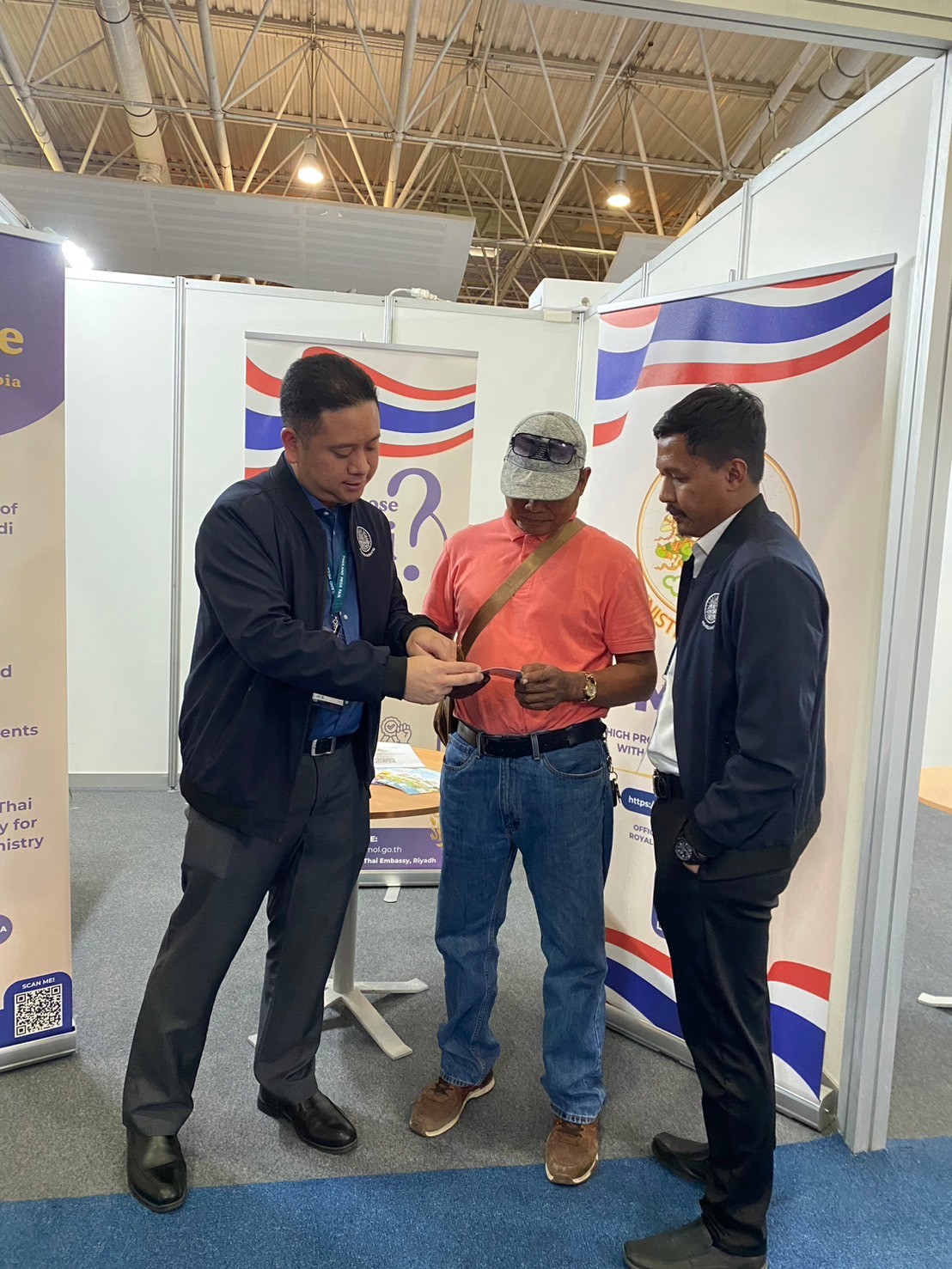 นายธนิทธิ์ ลอยพิมาย อัครราชทูตที่ปรึกษา (ฝ่ายแรงงาน) มอบหมายให้นายพลวัฒน์ ชื่นตระกูลวิทยา ที่ปรึกษา (ฝ่ายแรงงาน) พร้อมเจ้าหน้าที่สำนักงานแรงงานในประเทศซาอุดีอาระเบีย ร่วมออกบูธ