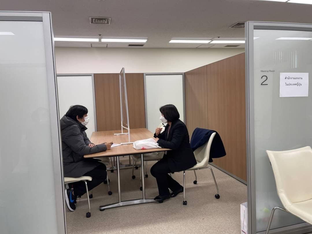 เมื่อวันที่ 11 ธันวาคม 2564 เวลา 09.30 น. (ตามเวลาท้องถิ่นประเทศญี่ปุ่น ซึ่งเร็วกว่าเวลาประเทศไทย 2 ชั่วโมง) นางสาวสดุดี กิตติสุวรรณ อัครราชทูตที่ปรึกษา (ฝ่ายแรงงาน) สำนักงานแรงงานในประเทศญี่ปุ่น ได้ร่วมให้บริการกงสุลสัญจร ณ เมืองนาโกยา จังหวัด Aichi ซึ่ง สนร.ญี่ปุ่น ได้ร่วมให้บริการคำปรึกษาด้านแรงงาน กฎหมายแรงงาน และสิทธิประโยชน์ด้านแรงงาน ตลอดจนพบปะและหารือกับเครือข่ายคนไทยในประเทศญี่ปุ่นและอาสาสมัครแรงงาน โดยประเด็นที่ได้ให้คำปรึกษากับแรงงานเกี่ยวกับ การเปลี่ยนวีซ่าจากผู้ฝึกปฏิบัติงานด้านเทคนิคเป็นแรงงานทักษะเฉพาะ สิทธิประโยชน์ด้านประกันสังคม และจากการพบปะและหารือกับเครือข่ายคนไทยในประเทศญี่ปุ่นและอาสาสมัครแรงงาน สนร.ญี่ปุ่น ได้รับทราบข้อจำกัดของแรงงานไทยด้านการสื่อสารภาษาญี่ปุ่น ปัญหาการปรับตัวให้เข้ากับนายจ้างญี่ปุ่นและแรงงานชาติอื่น ๆ ในสถานที่ทำงาน ซึ่งเป็นสาเหตุหนึ่งที่ทำให้แรงงานไทยตัดสินใจหลบหนี โดยขอให้กระทรวงแรงงานกำชับองค์กรผู้ส่งในการอบรมภาษาญี่ปุ่นให้กับผู้ฝึกปฏิบัติงานด้านเทคนิค โดยเฉพาะคำศัพท์เฉพาะที่จำเป็นต้องใช้ในสายอาชีพที่มาฝึกปฏิบัติงานก่อนเดินทางมาประเทศญี่ปุ่น