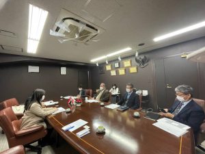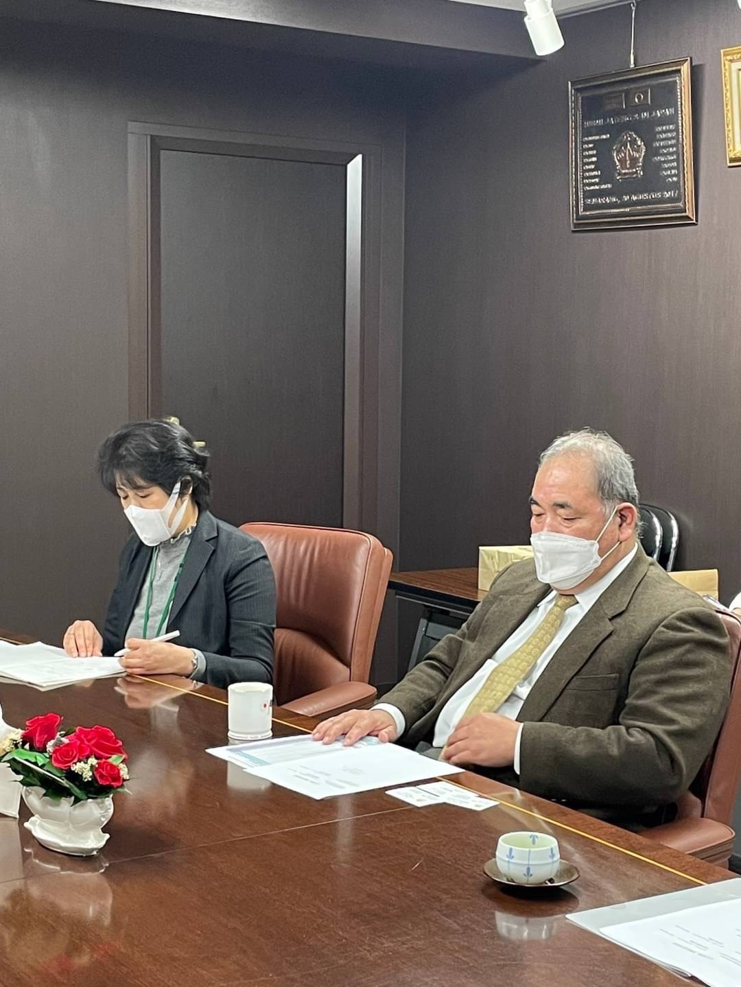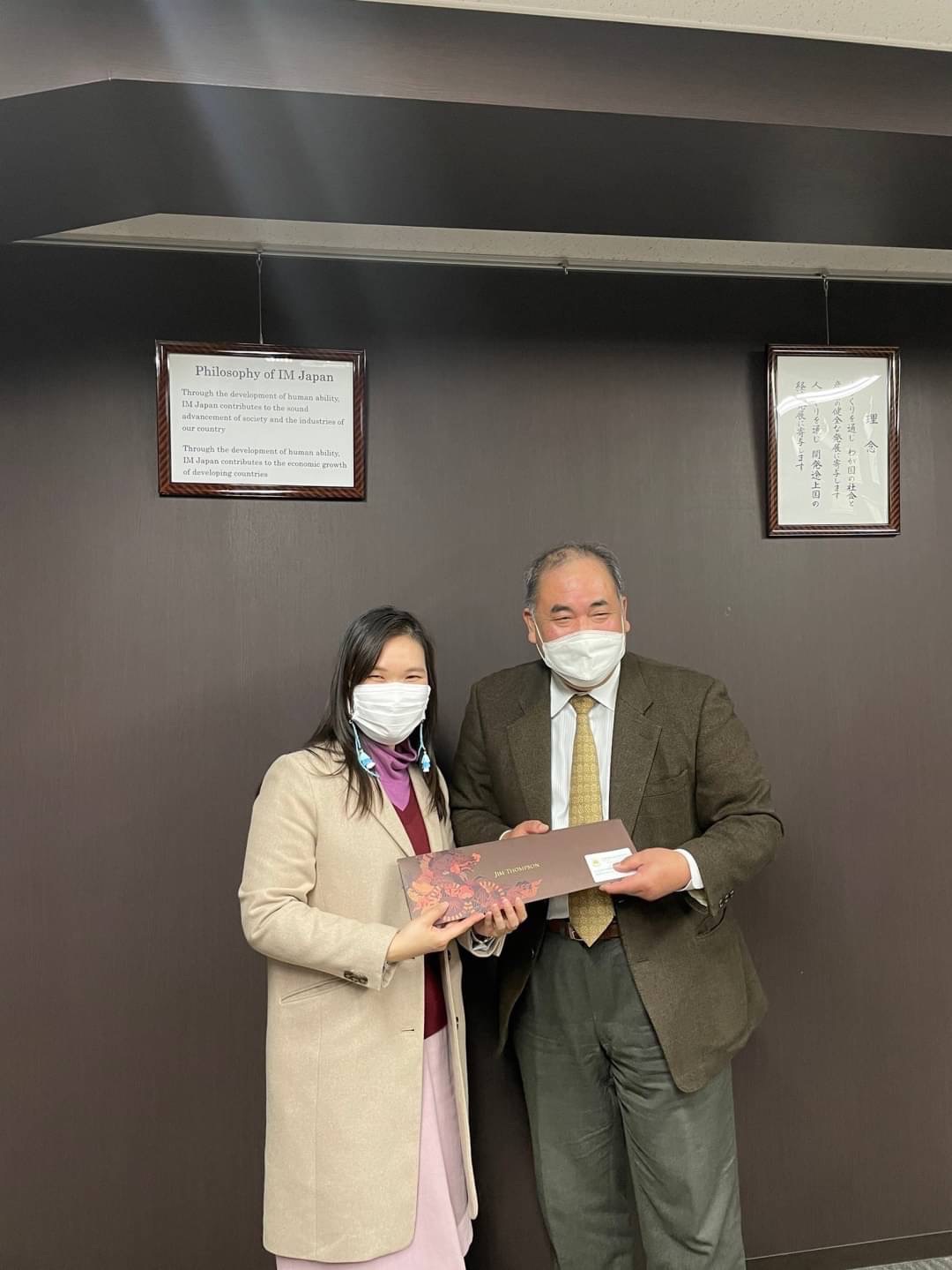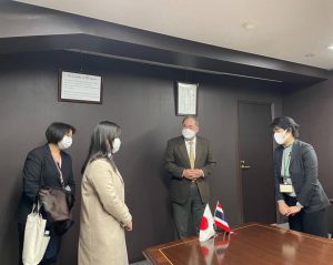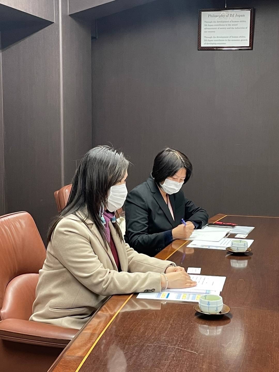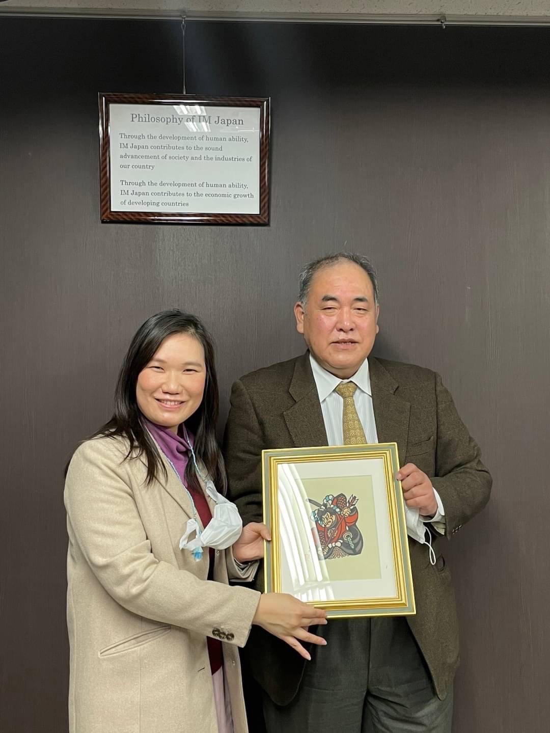 เมื่อวันที่ 21 มกราคม 2565 เวลา 10.30 น. (เวลาท้องถิ่นญี่ปุ่น ซึ่งเร็วกว่าประเทศไทย 2 ชั่วโมง) นางสาวสดุดี กิตติสุวรรณ อัครราชทูตที่ปรึกษา (ฝ่ายแรงงาน) สำนักงานแรงงานในประเทศญี่ปุ่น พร้อมด้วยนางสาวเกศสุดา มงคลชาติ ที่ปรึกษา (ฝ่ายแรงงาน) ได้เดินทางไปเข้าพบและหารือกับ Mr. KANAMORI Hitoshi ตำแหน่ง Executive Chairman (CEO) องค์กร IM Japan นาย OKANO Yoshikazu ตำแหน่ง Managing Director และนาย KOMIYA Masanobu ตำแหน่ง General Manager, International Affairs Department โดยนางสาวสดุดีฯ ได้ใช้โอกาสนี้ในการแนะนำตัวอย่างเป็นทางการภายหลังเข้ารับตำแหน่งอัครราชทูตที่ปรึกษา (ฝ่ายแรงงาน) เมื่อเดือนมิถุนายน 2564 ที่ผ่านมา อวยพรเนื่องในวาระดิถีขึ้นปีใหม่ 2565 และขอบคุณองค์กร IM Japan ที่ส่งเสริม/สนับสนุนให้เยาวชนไทยมีงานทำ พัฒนาทักษะ การทำงาน/ความรู้ภาษาญี่ปุ่น สามารถนำความรู้ที่ได้รับจากการฝึกงานกลับไปพัฒนาประเทศชาติ และหลายรายสามารถขยายผลจนประสบความสำเร็จเป็นผู้ประกอบการที่ไทย รวมทั้งให้การดูแลผู้ฝึกปฏิบัติงานด้านเทคนิคไทยที่จัดส่งโดยกรมการจัดหางานผ่านองค์กร IM Japan เป็นอย่างดีมาโดยตลอด