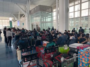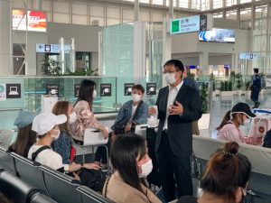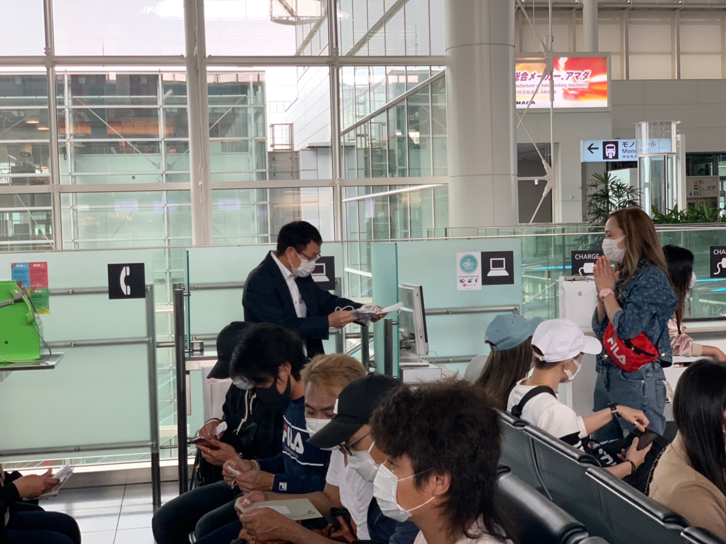 เมื่อวันที่ ๑ และ ๒ มิถุนายน ๒๕๖๓ สำนักงานแรงงานในประเทศญี่ปุ่น อำนวยความสะดวกส่งผู้ฝึกงานจากบริษัท ทรานคอม เอสซี จำกัด จังหวัดฟูกูโอกะ จำนวน ๘๕ คน เดินทางกลับประเทศไทย จากสนามบิน ฮาเนดะ ทั้งนี้ ได้มอบน้ำดื่มและหน้ากากอนามัยให้กับผู้เดินทางด้วย โดยเที่ยวบินดังกล่าวเป็น เที่ยวบิน Repatriation Flight ของสายการบิน ANA เที่ยวบิน NH ๘๔๗ ได้รับความกรุณาจากสถานเอกอัครราชทูต ณ กรุงโตเกียว และ สถานกงสุลใหญ่ ณ ฟูกูโอกะ ประสานงานในการจัดเที่ยวบินส่งผู้ฝึกงาน โดย สกญ. ฟูกูโอกะ ได้อำนวยความสะดวกการเดินทางจากจังหวัดฟูกูโอกะมายังสนามบินฮาเนดะ และมอบเครื่องอุปโภคบริโภคที่จำเป็นสำหรับใช้ระหว่างการเดินทาง เช่น หน้ากากอนามัย เจลแอลกอฮอล์ อาหาร และเครื่องดื่ม ด้วย